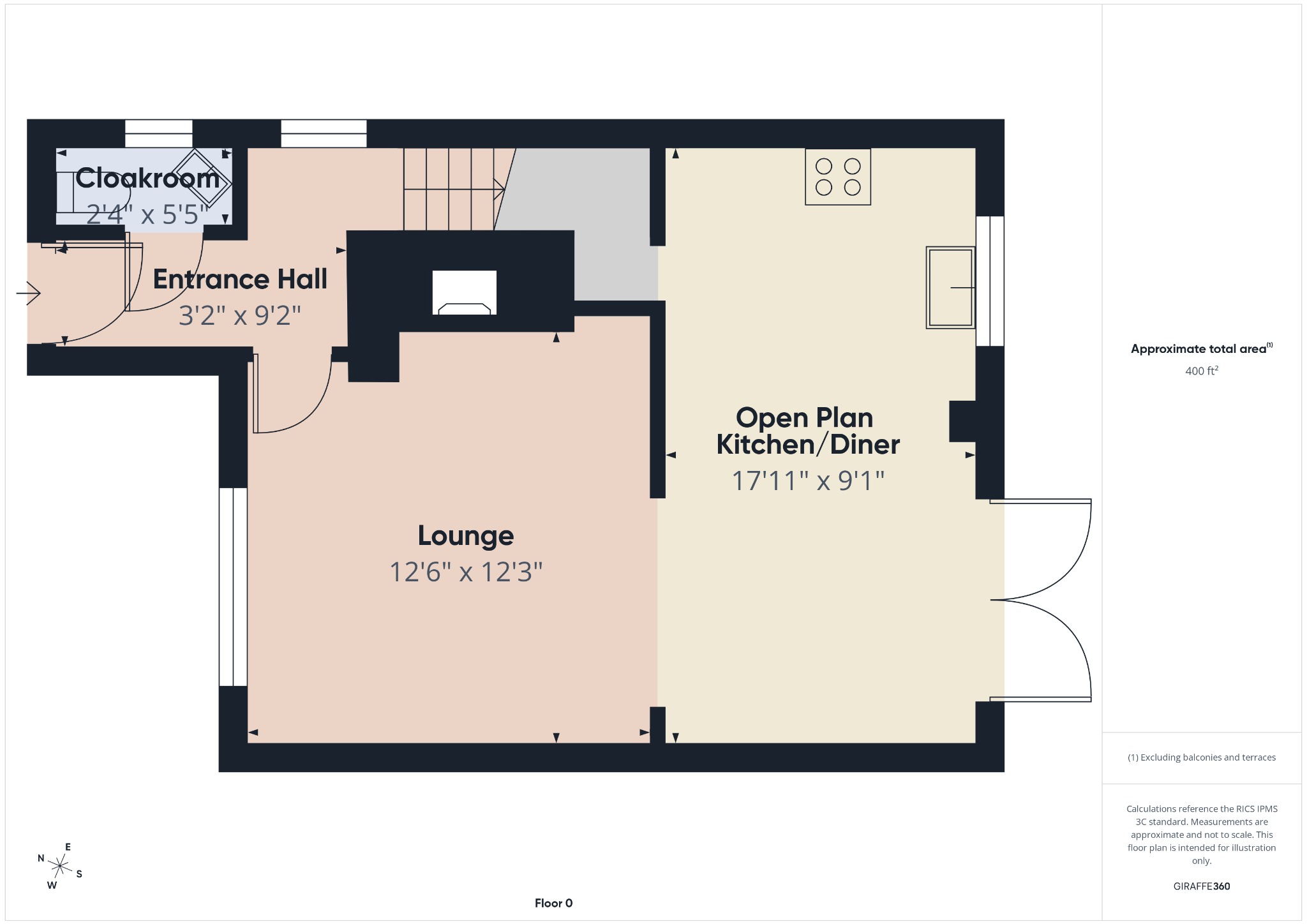 - Open Plan Kitchen/Diner with Double Glazed French Doors to the Rear Garden
