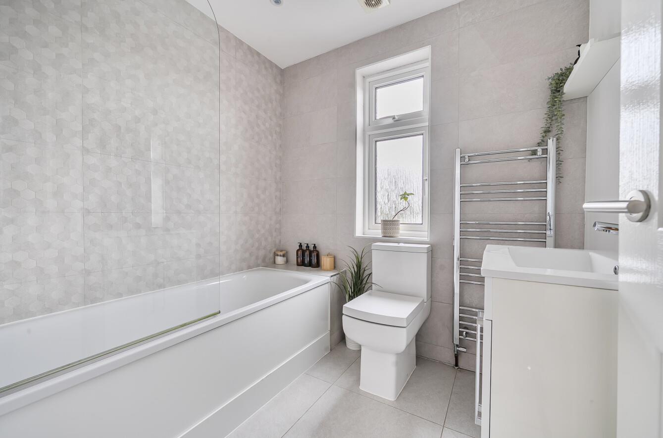 Bathroom: - Bath with Shower overhead, toilet, wash basin with cupboard under, extractor fan and heated towel rail.