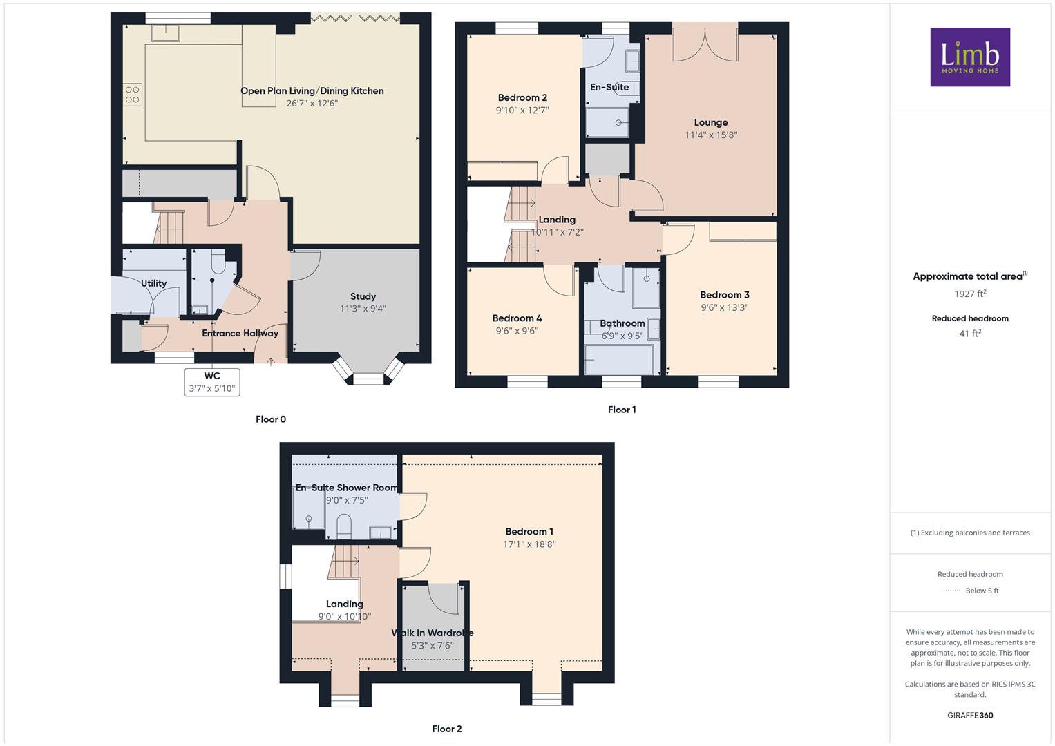 The first floor hosts three comfortable double bedrooms, two offering fitted wardrobes, and one featuring a private en-suite shower room. This level also boasts a spacious lounge with a charming 'Juliet' style balcony which could also be used as a fifth bedroom plus there is a stylish family bathroom. Ascend to the second floor, which is dedicated to the luxurious main bedroom, featuring a walk-in wardrobe and an en-suite shower room. A versatile landing area on this floor provides an ideal spot for working from home or simply relaxing with a good book.
