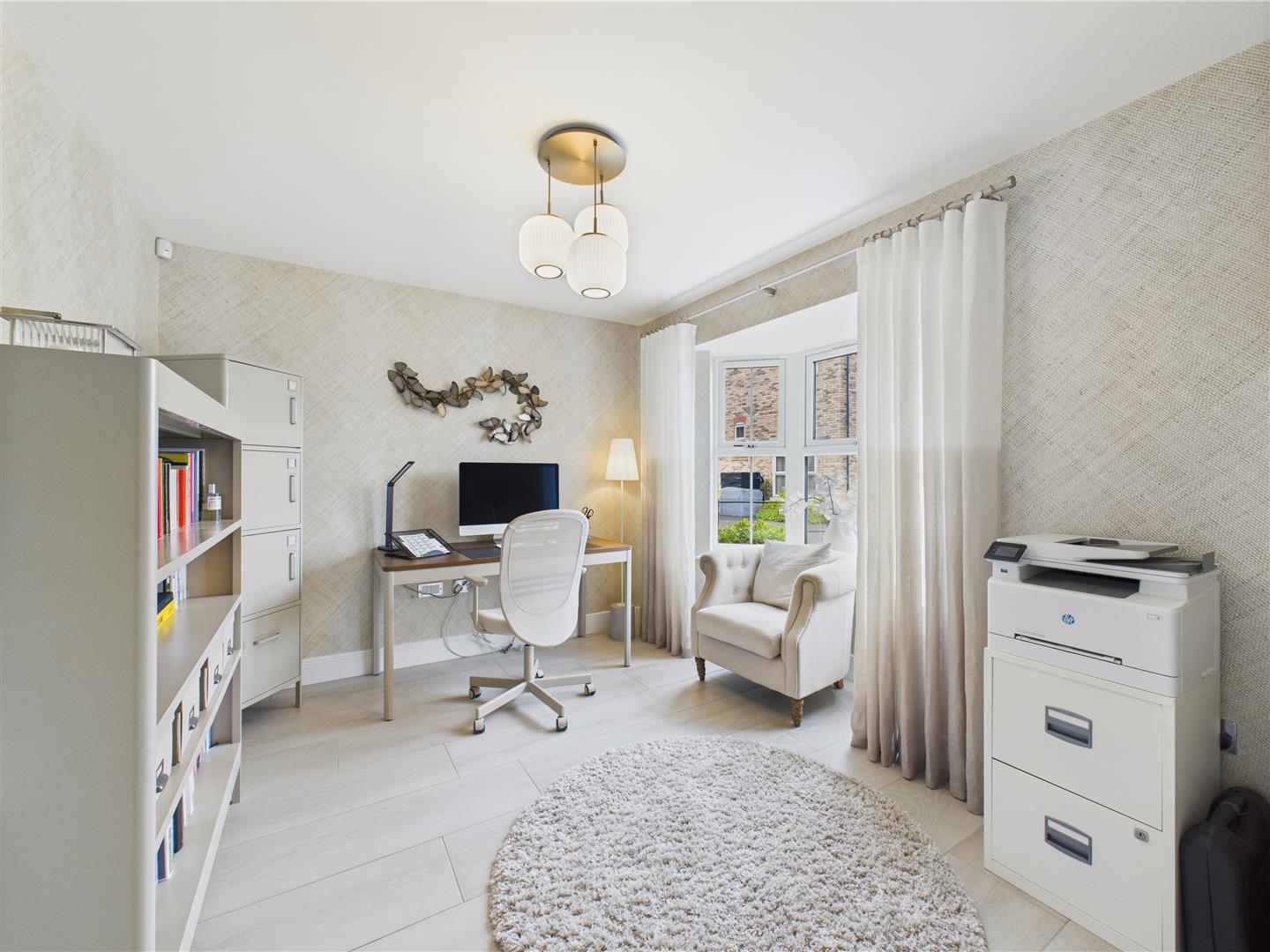 The meticulously designed layout begins with an inviting entrance hallway, leading to a convenient cloaks/W.C., a practical utility room, and a dedicated study. At the heart of the home lies a superb living/dining kitchen, complete with an excellent range of integrated appliances and bi-folding doors that open seamlessly to the rear garden.