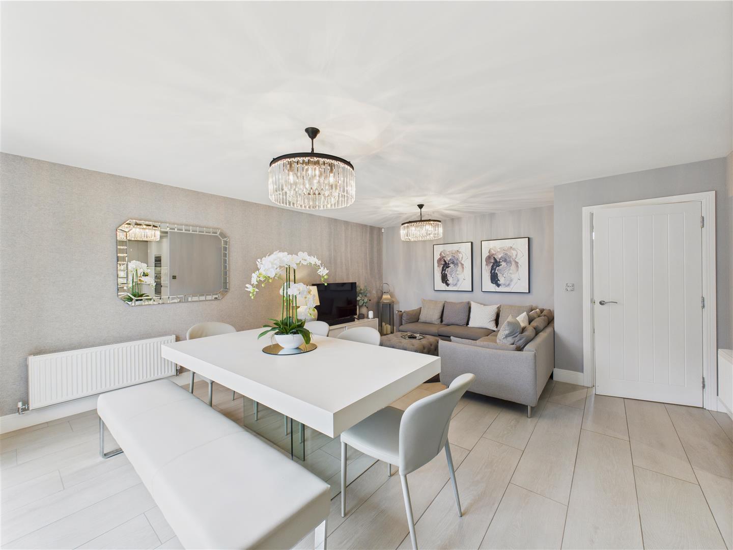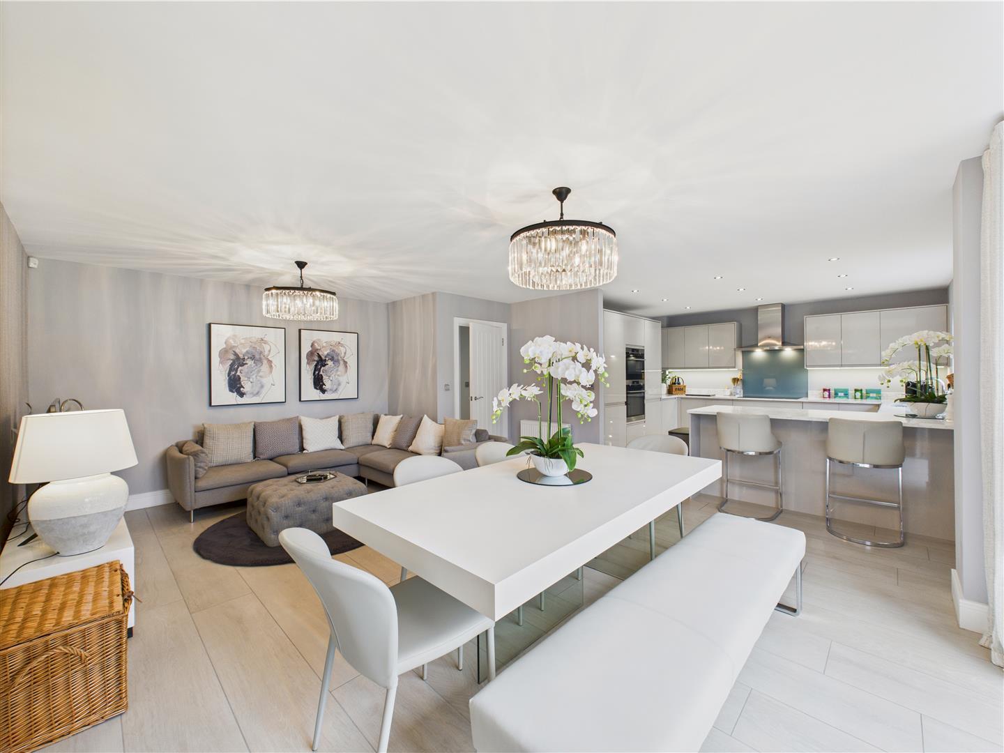 Immaculate detached family home with open-plan kitchen/diner, Quartz worktops & bi-folds to landscaped garden, plus loun...