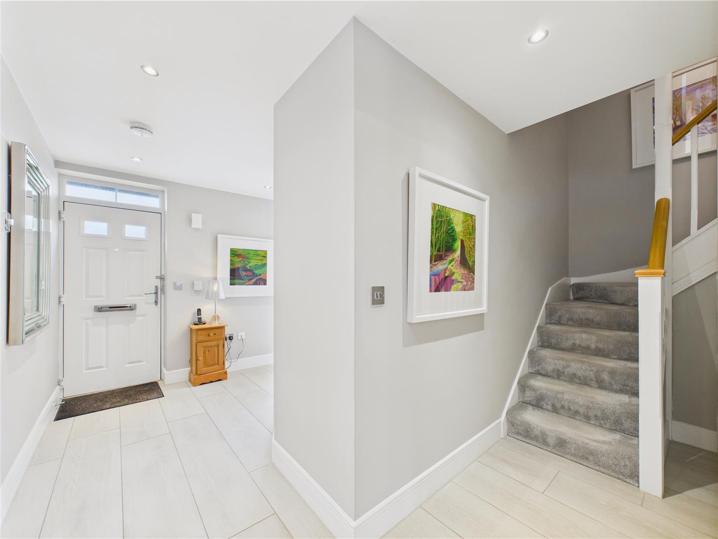 Entrance Hallway - With tiled floor, staircase leading up to the first floor with cupboard under and further storage cupboard.