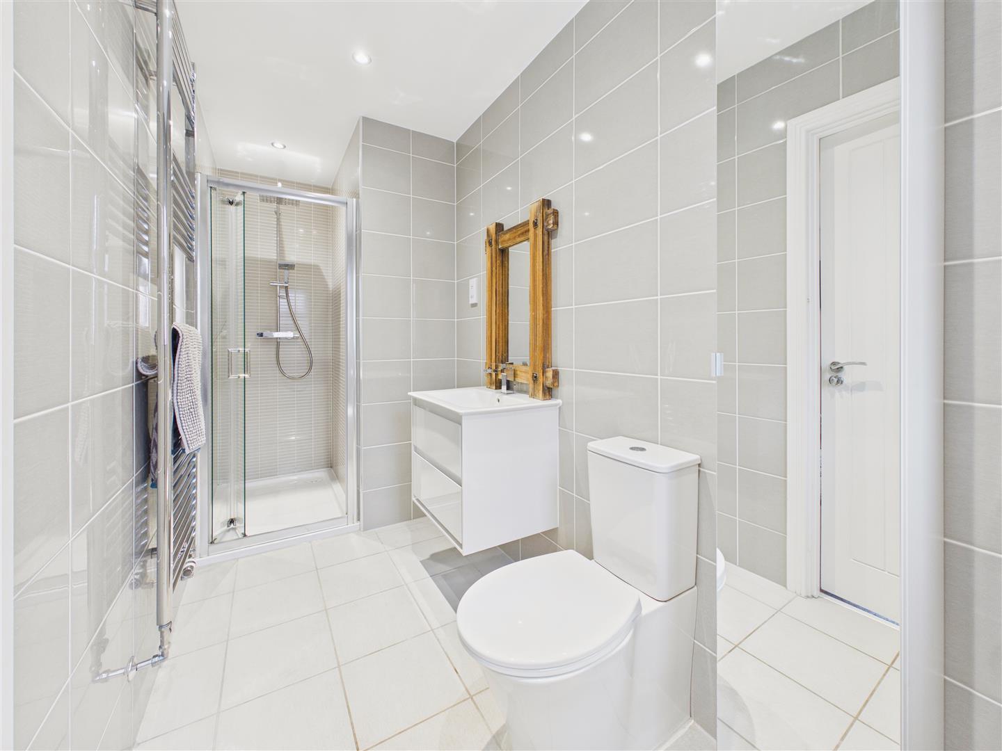 En-Suite Shower Room - Fully tiled, comprising shower enclosure to corner, low-flush W.C. and wash-hand basin atop fitted vanity unit. Window to side elevation.