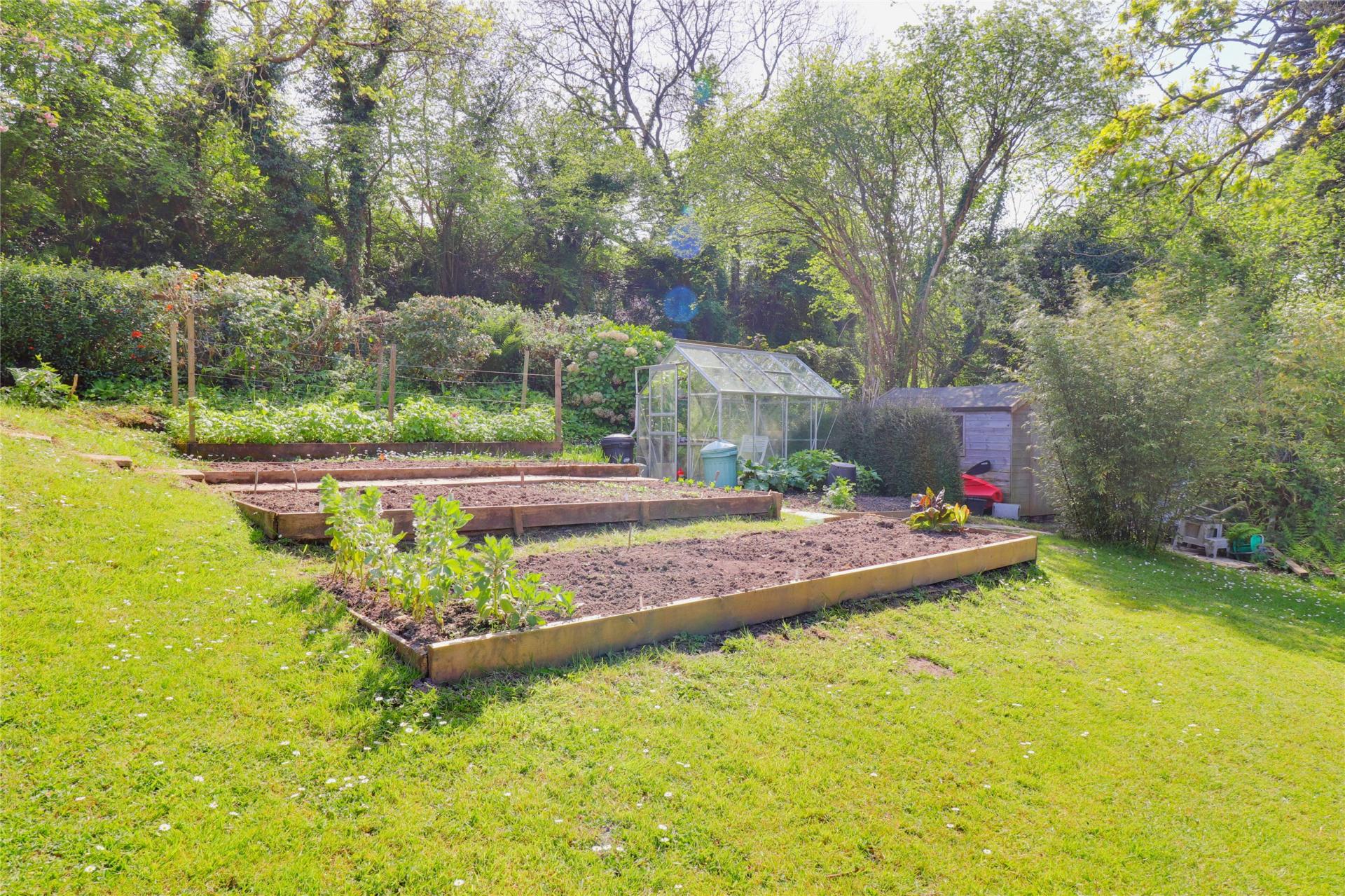 Outside to the front is a walled driveway with parking for several cars, mature shrubs and gates to the garden. The garden is a wonderful size stream to the bottom, raised beds, lawn and patio for outdoor dining.
