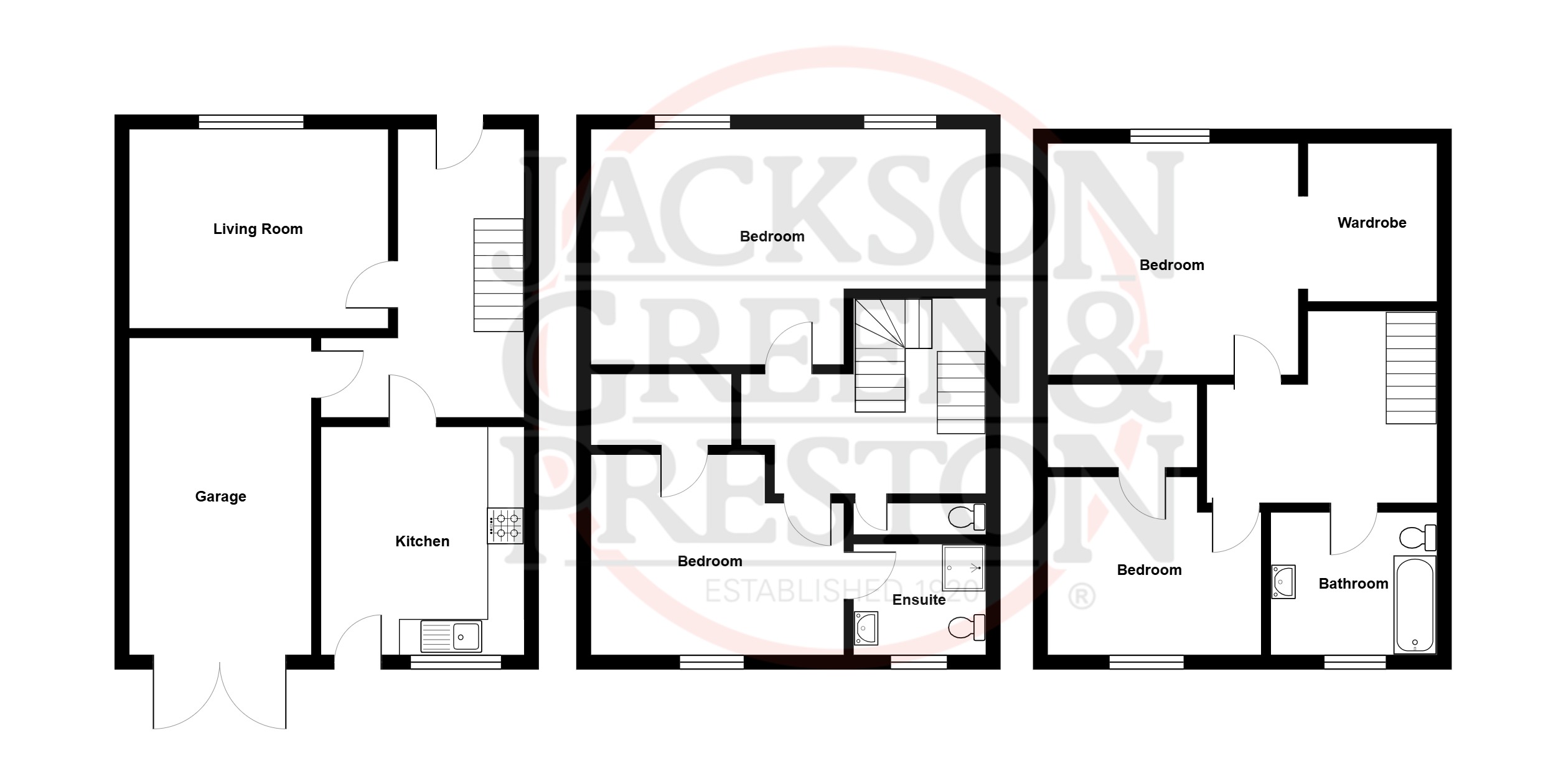 The ground floor includes an entrance hall, a lounge, a kitchen with dining space, and internal access to the garage, which can be used for storage, parking, or conversion to further living space (subject to any required permissions).