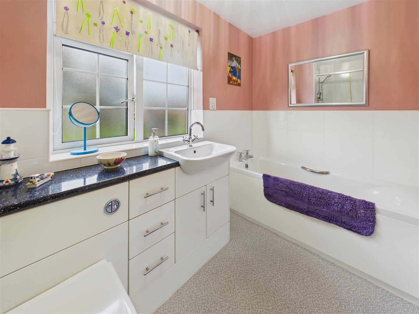 Bathroom - With modern suite comprising a bath, shower enclosure and vanity unit with wash hand basin and low flush W.C. Window to front.