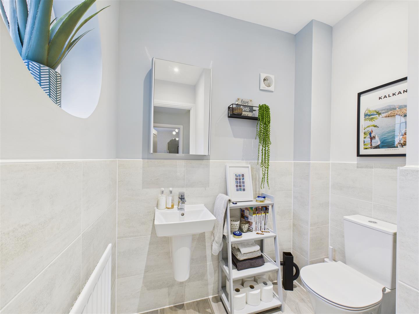 Cloaks/W.C. - With low flush W.C. and wash hand basin. Amtico flooring and feature circuular window to the front elevation.