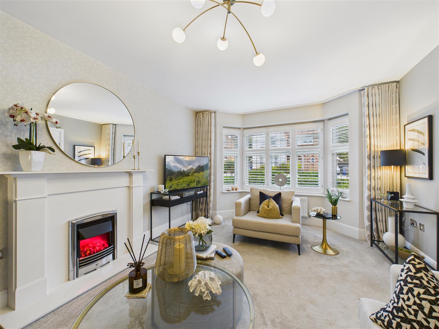 Lounge - With Clairemont stone fireplace housing an electric fire. Bay window with plantation shutters to the front elevation.