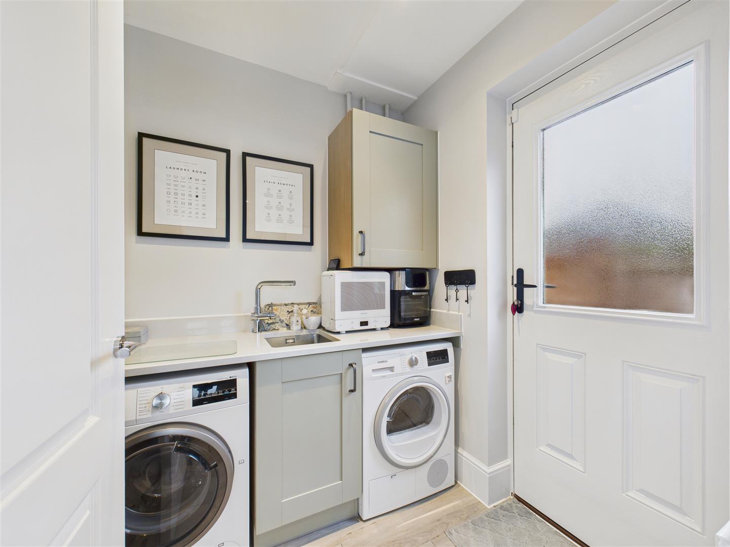 Utility - With fitted units, Silestone worktops, inset sink, plumbing for a washing machine and space for dryer. External access door to side
