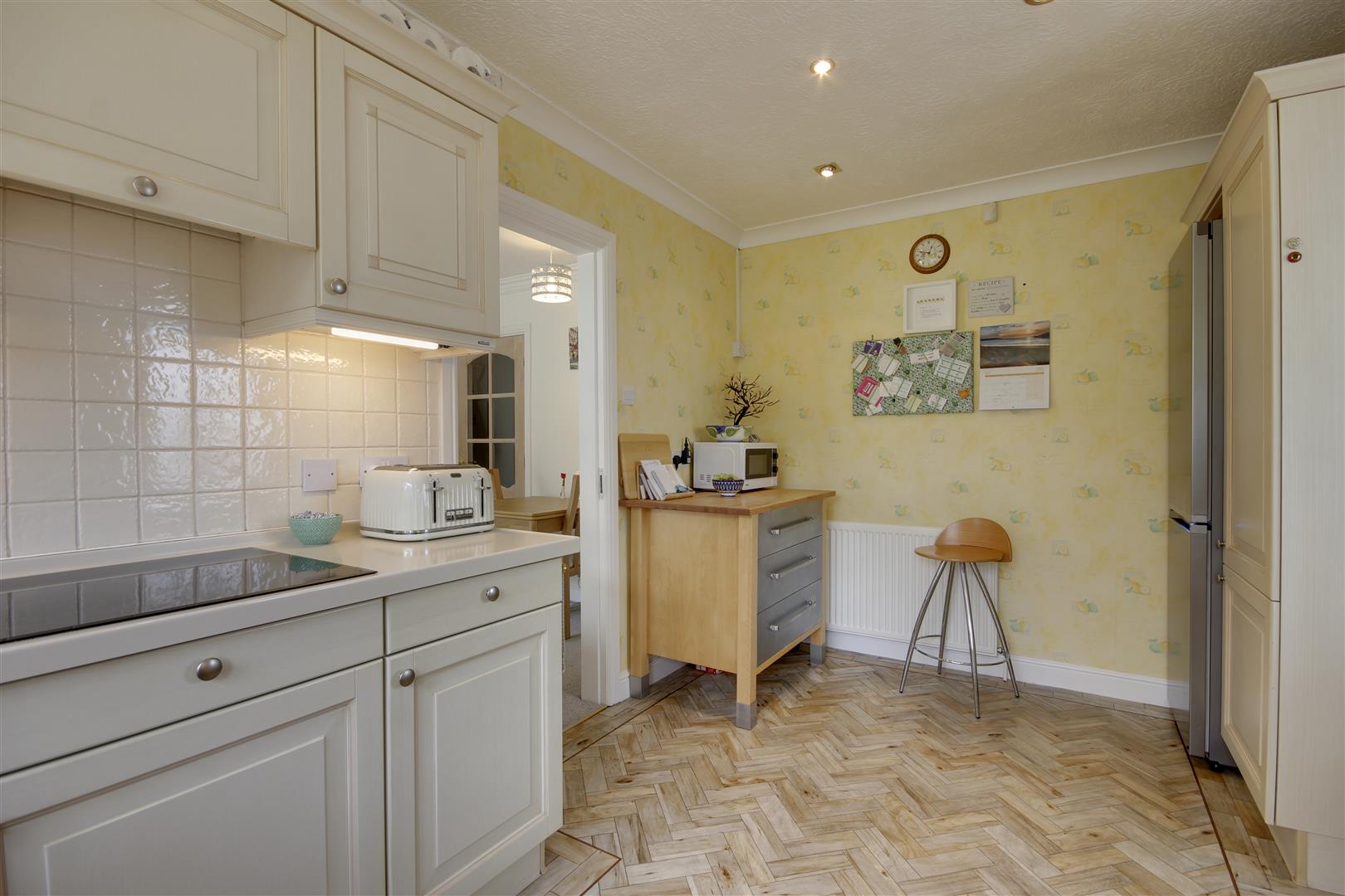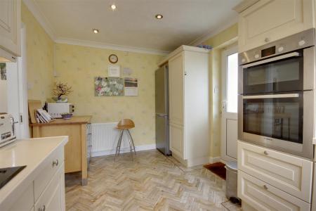 Breakfast Kitchen - 4.45m x 2.74m approx (14'7" x 9'0" approx) - Having a comprehensive range of fitted base and wall units by Rational incorporating a range of built-in appliances comprising an electric double oven/grill, four ring electric hob with filter hood above, space for fridge and freezer, sink with mixer tap, plumbing for a dishwasher or washing machine, Corian worksurfaces, tiled splashbacks, Amtico flooring, window to rear and external access door leading to the outside patio area.