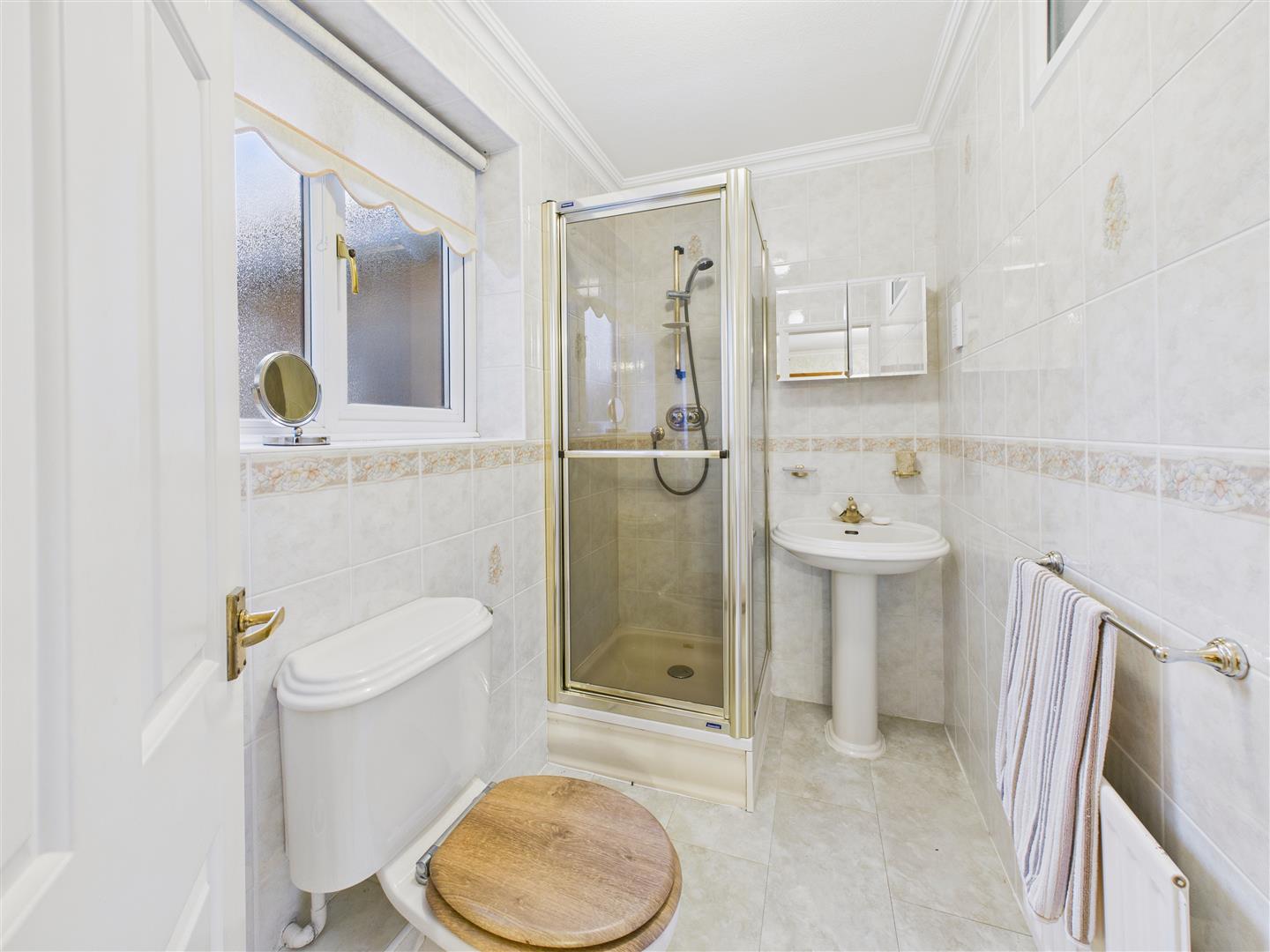 En-Suite Shower Room - With low level W.C., pedestal wash hand basin, shower cubicle, tiling to walls.