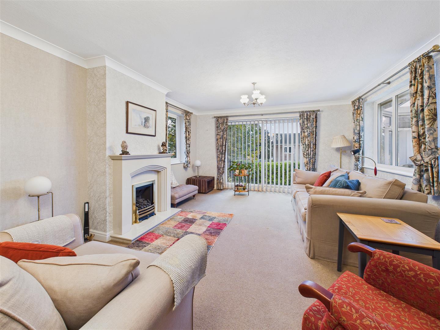 Lounge - A spacious room to the rear of the house with windows to each side and patio doors overlooking the garden to the south. There is a feature marble fire surround housing a "living flame" gas fire.