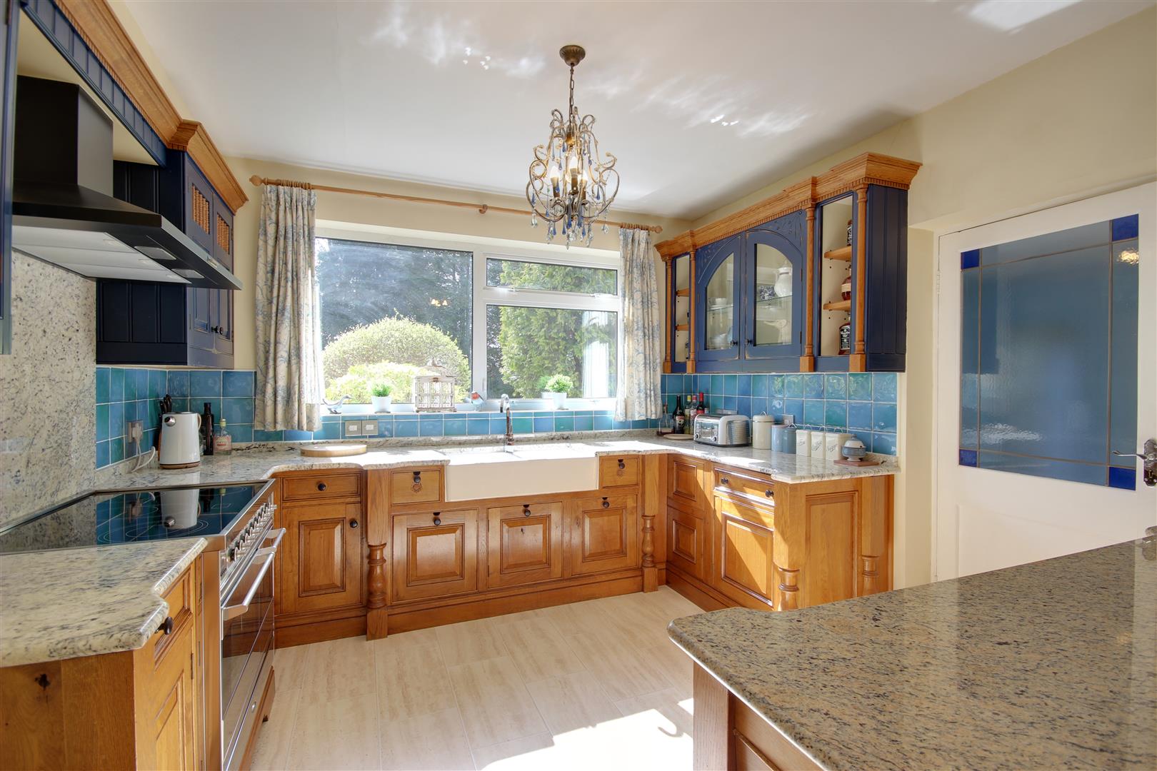 Dining Kitchen - 7.75m x 3.43m approx (25'5" x 11'3" approx) - The kitchen has a range of fitted timber units complimented by Chamfered edged granite work surfaces. There is a double Belfast sink and mixer tap, range cooker with filter hood above, integrated dishwasher and a fridge freezer. Window to south elevation, tiled flooring, wide opening through to the living room.