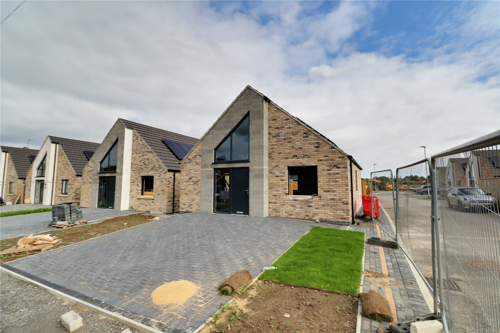 GROUNDS    The garden will have a terraced area of approximately 8m2 in slab with the remainder of the garden being prepared and grass seeded. The front will have soft landscaping with shrub planted or turf depending on the agreed landscaping plan with the Council. Hard standing to the front forming a driveway will be block laid. Boundary fencing is to typically be formed with 1.8m high timber panelling units. Full spec sheet is available to view in the Brigg Office.