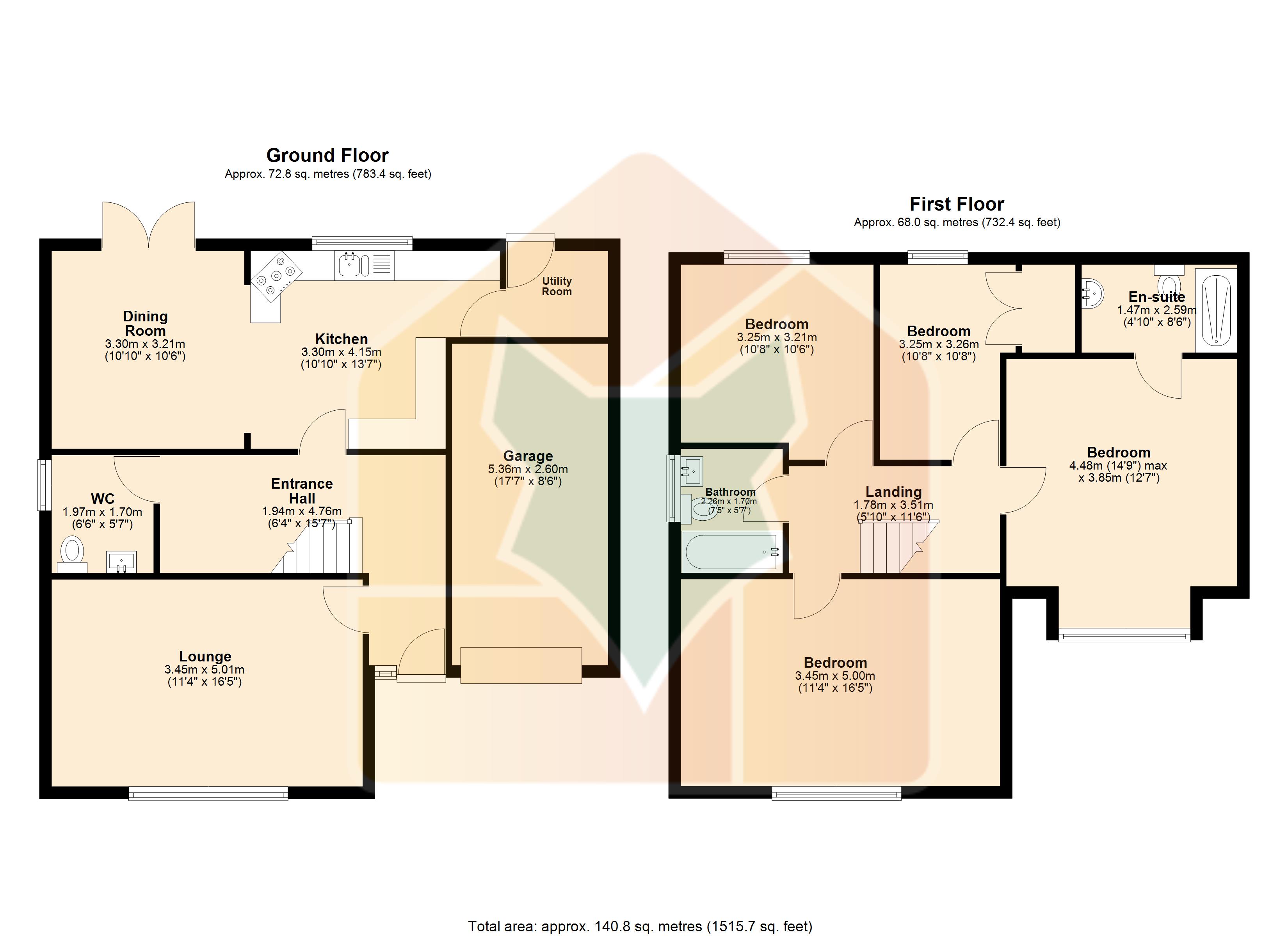 A welcoming entrance hall, spacious lounge, impressive open-plan kitchen–diner, utility room, and ground-floor WC. To the first floor are four generous bedrooms, served by a modern family bathroom. The master bedroom benefits from its own en-suite shower room.