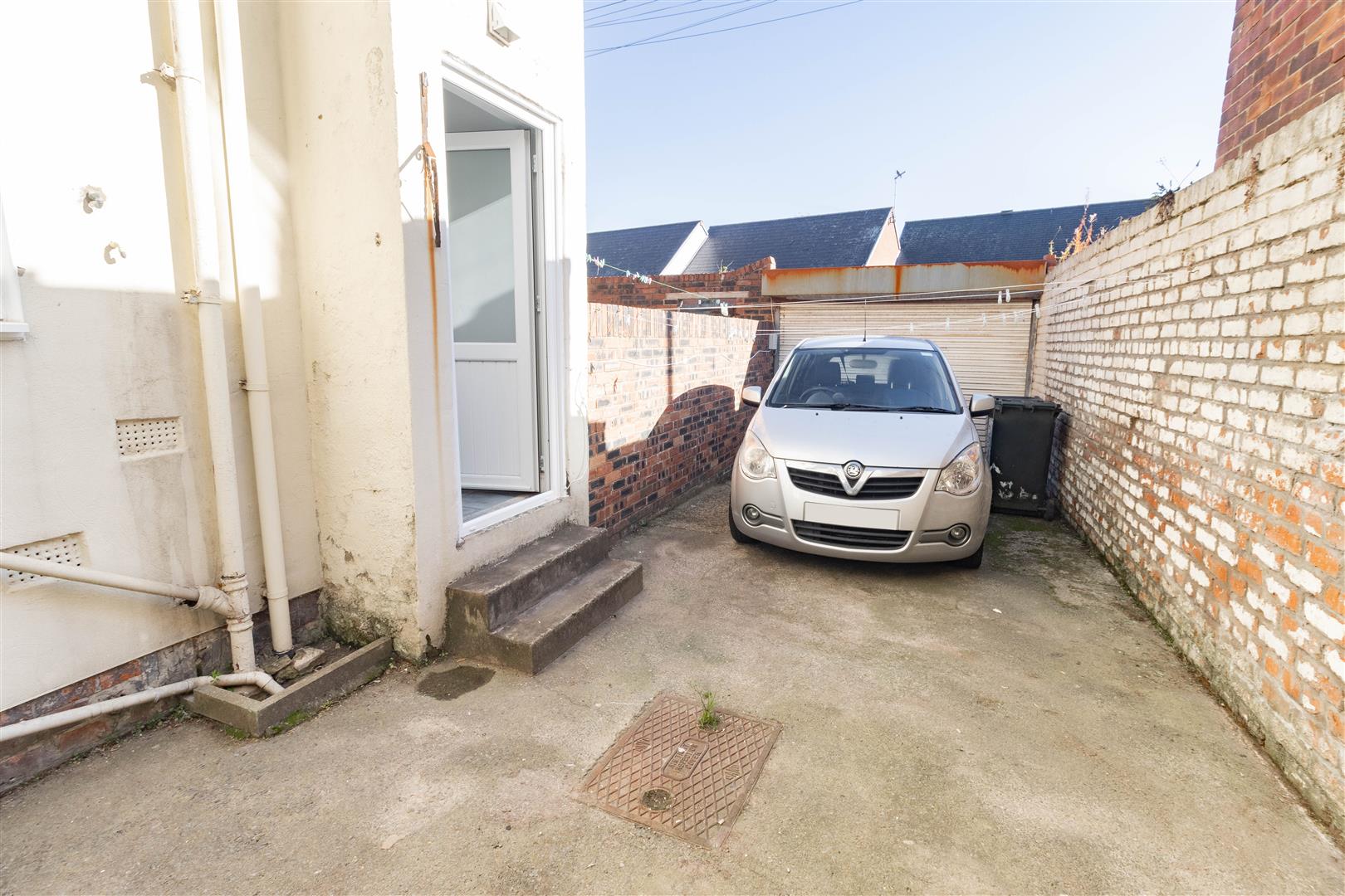 The property also boasts a private rear yard with a garage door and off-street parking, a valuable addition in this location.