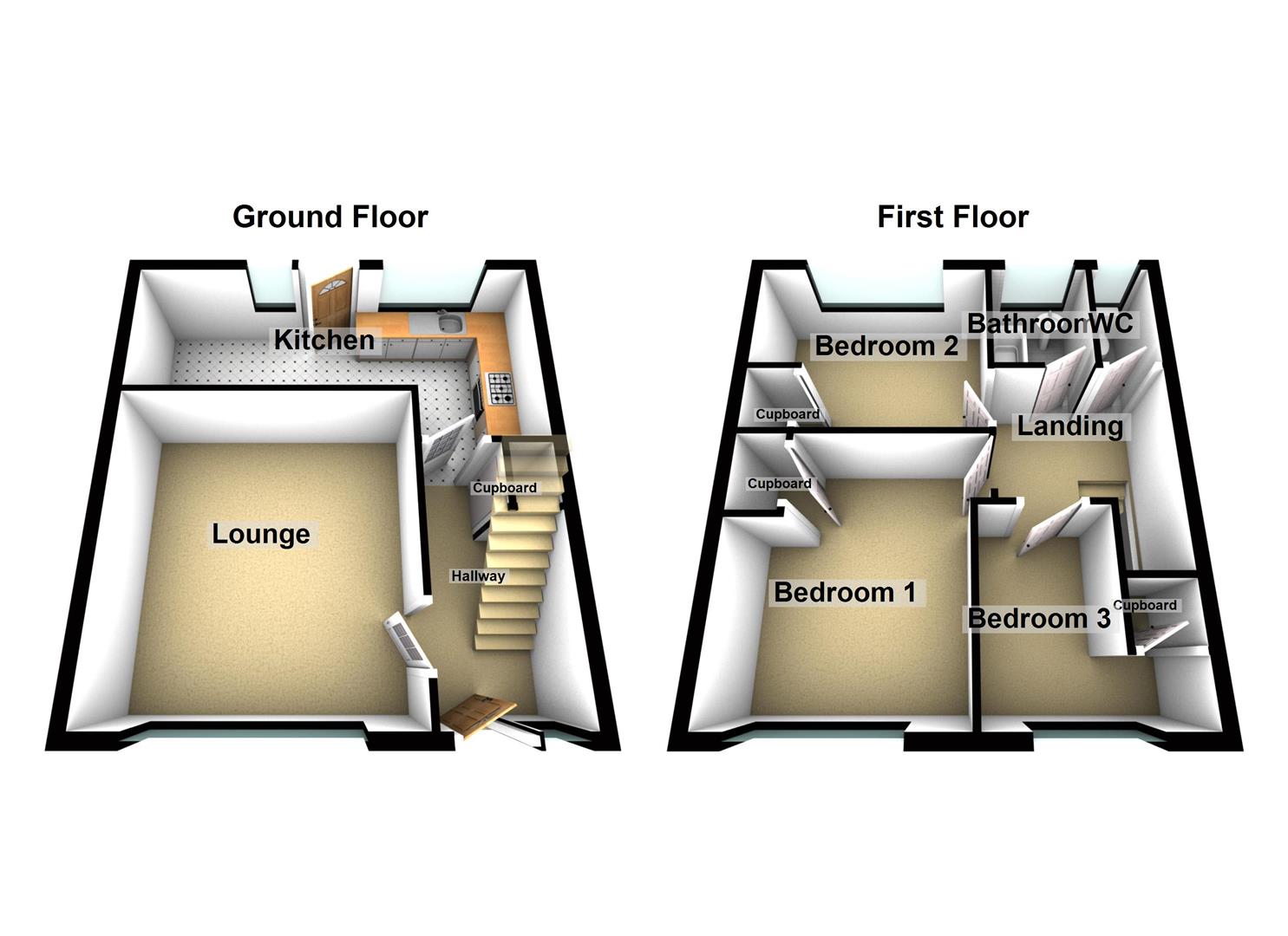 Hallway - Stairs to first floor, access to lounge and kitchen. Understairs cupboard.