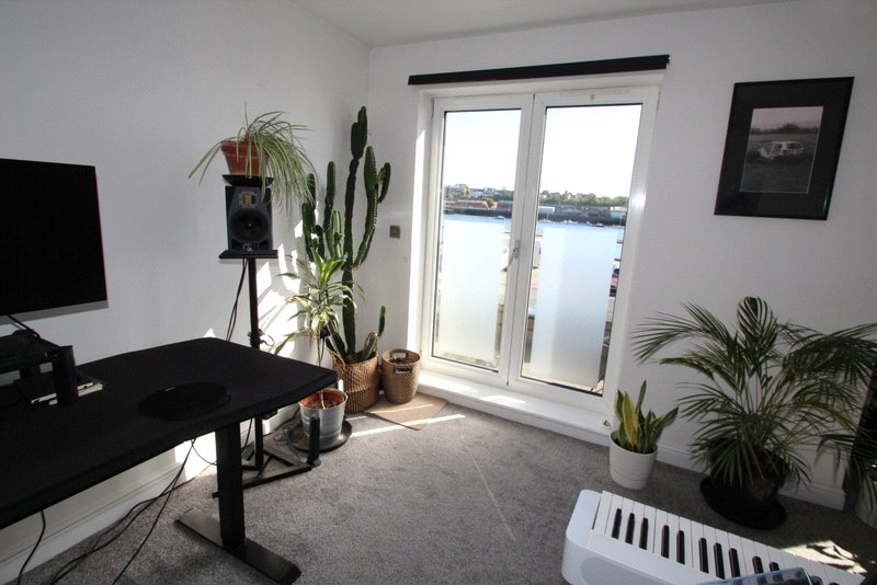 Living Room/Dining Room 15'3" x 11'10" (4.65m x 3.6m). Two sets of double glazed windows with fantastic river views and double glazed French doors provide easy access to small balcony area maximising river views and providing superb natural lighting, fitted blinds, TV point and radiator.