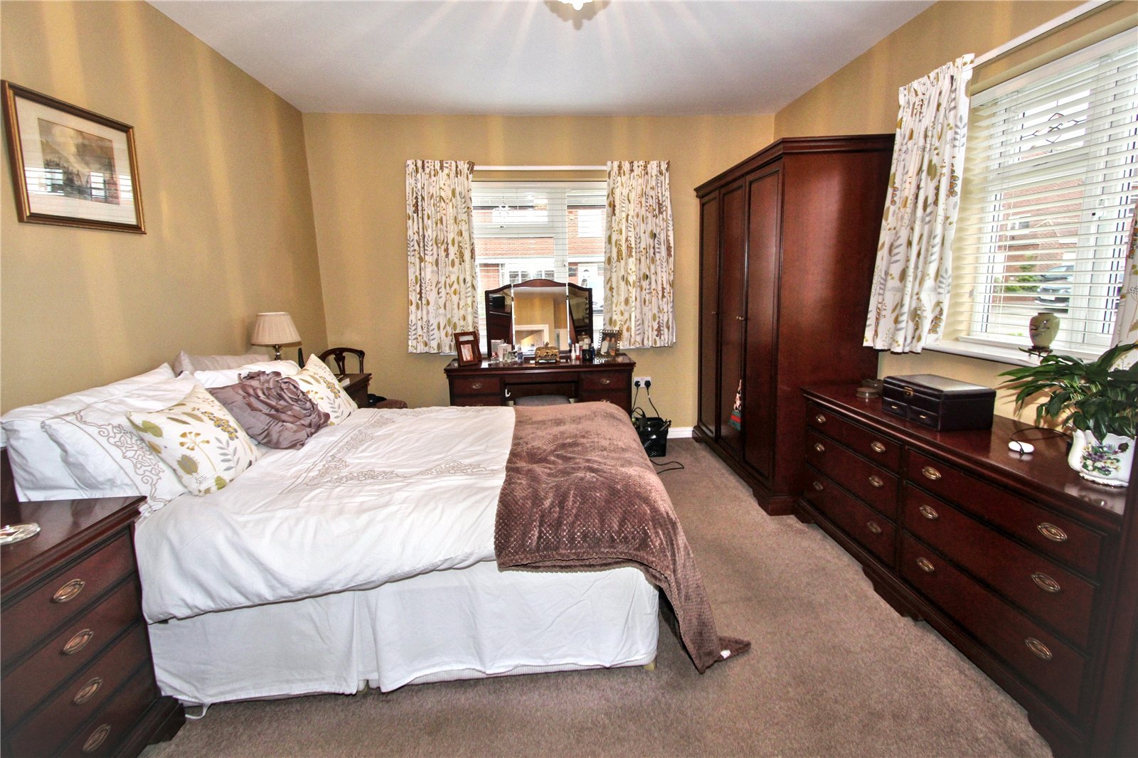 Bedroom Two 13' x 12'8" (3.96m x 3.86m). With a good range of built-in fitted wardrobes, drawer space and vanity unit, double glazed window (with venetian blind) and radiator.