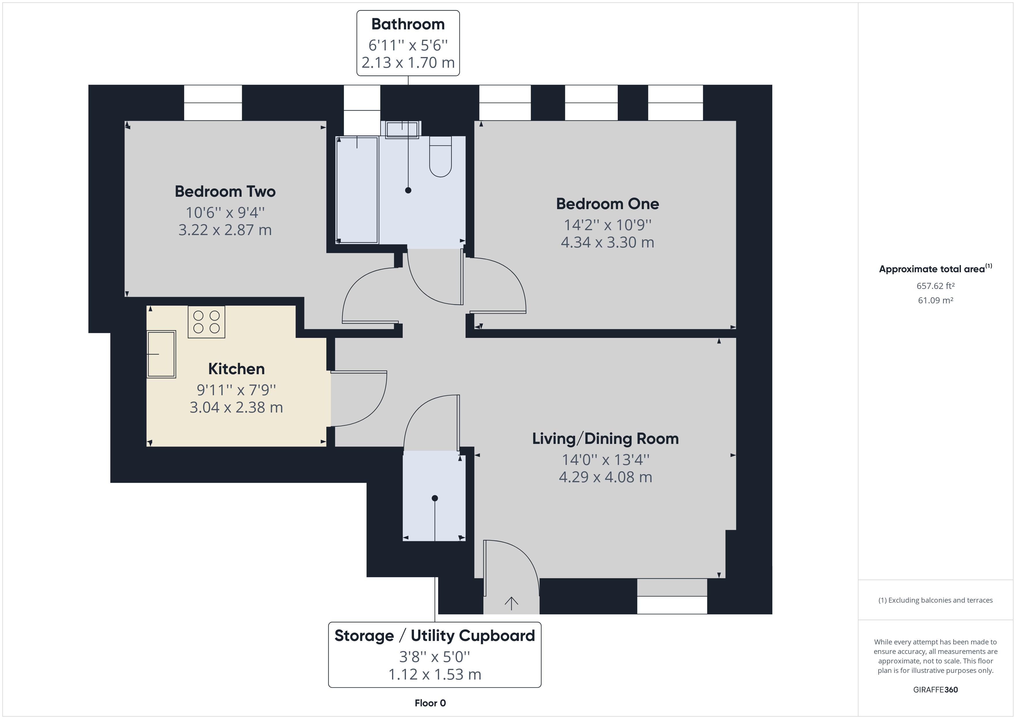 - Approximately 657 Sq. ft
