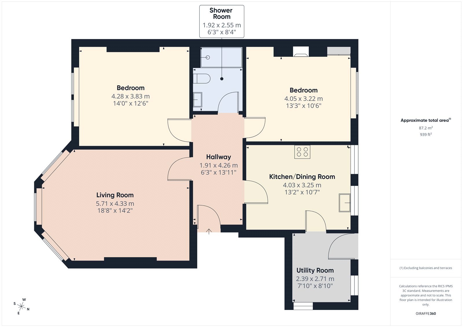 - Approximately 939 sq. ft.