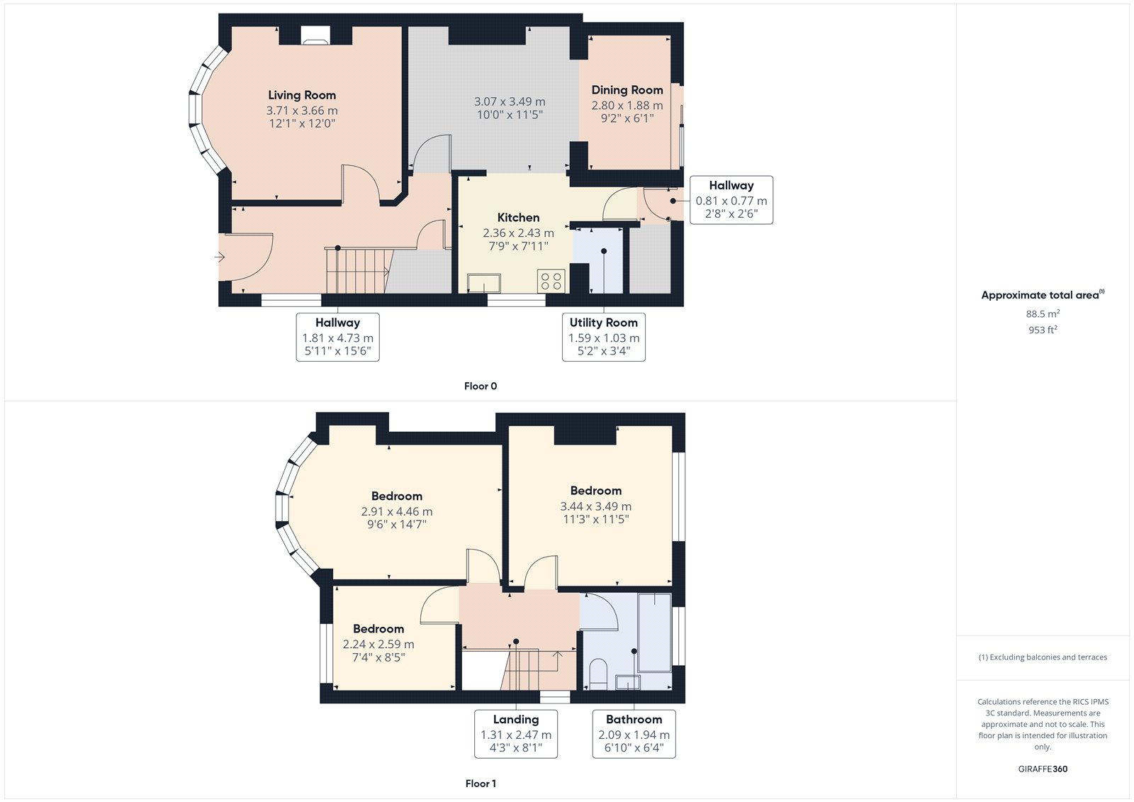 - Approximately 953 square feet