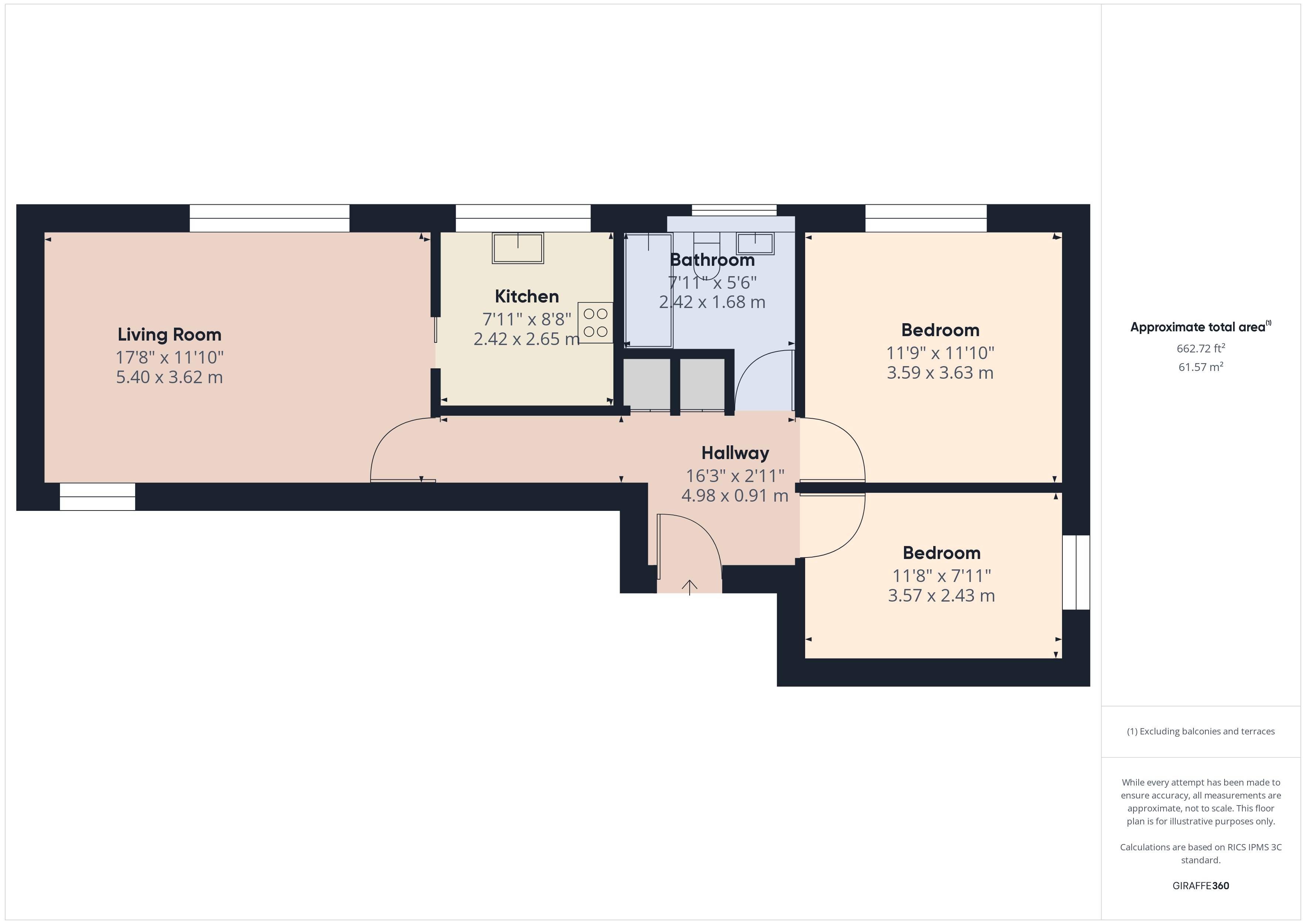 - Two-bedroom leasehold first-floor apartment with 1/11th share of the freehold