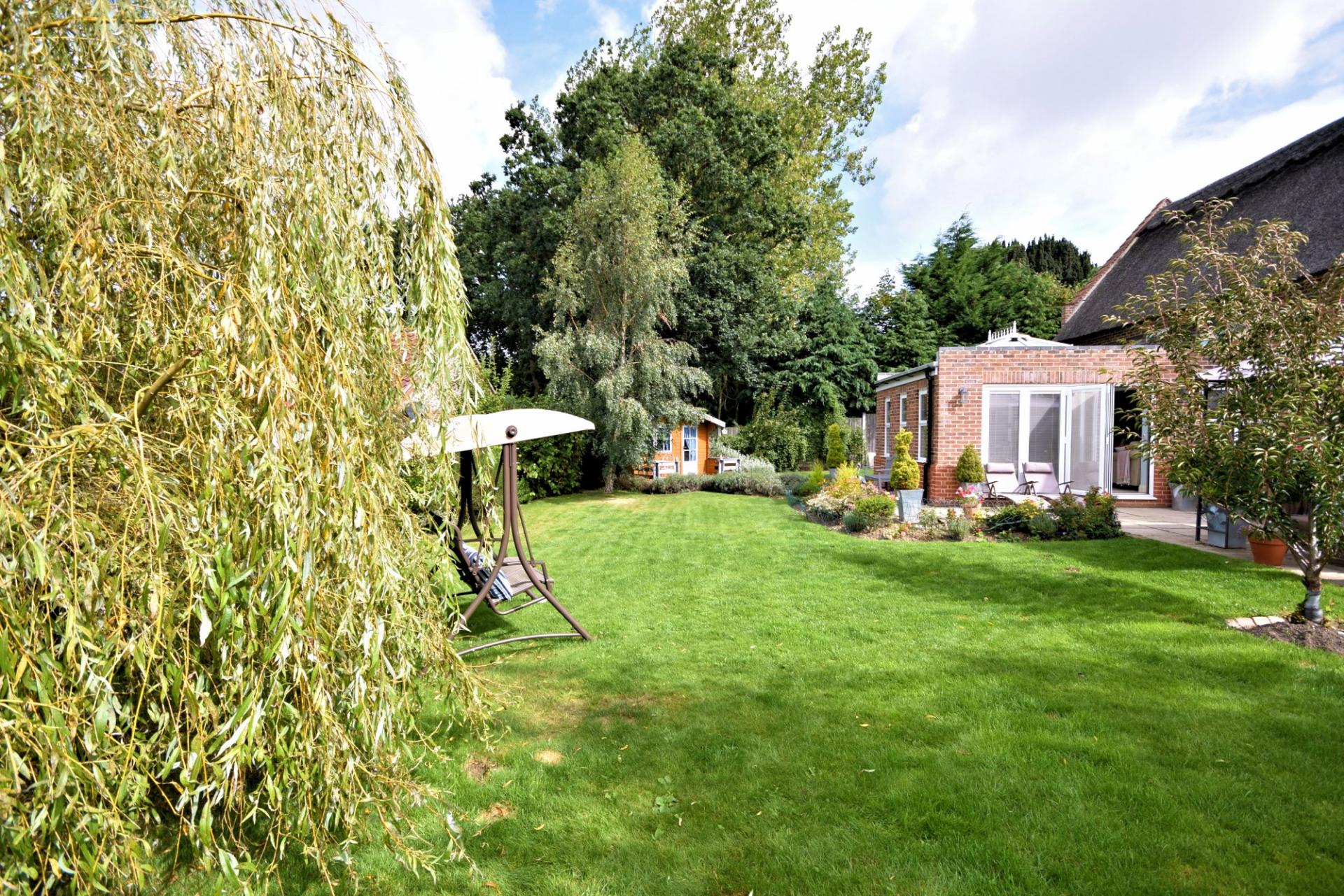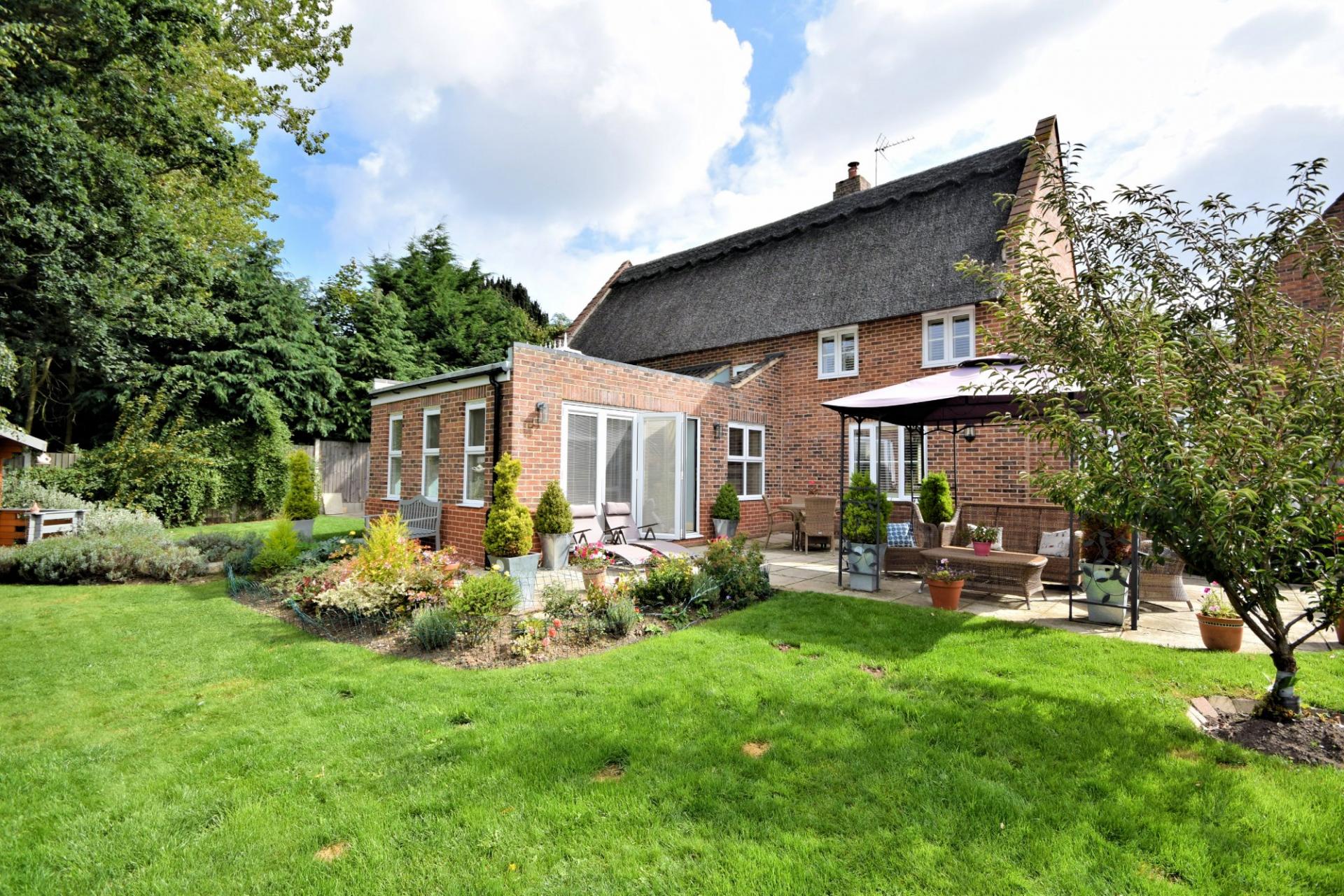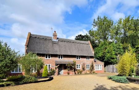 Rose Cottage is an idyllic five bedroom property built to an extremely high standard approximately 7 years ago, in a period cottage style under a modern Norfolk Reed thatch with fire boarding. Approached via a shared gravelled drive that is owned by Rose Cottage, there is plenty of parking to the front and a small lawn with a variety of shrubs.