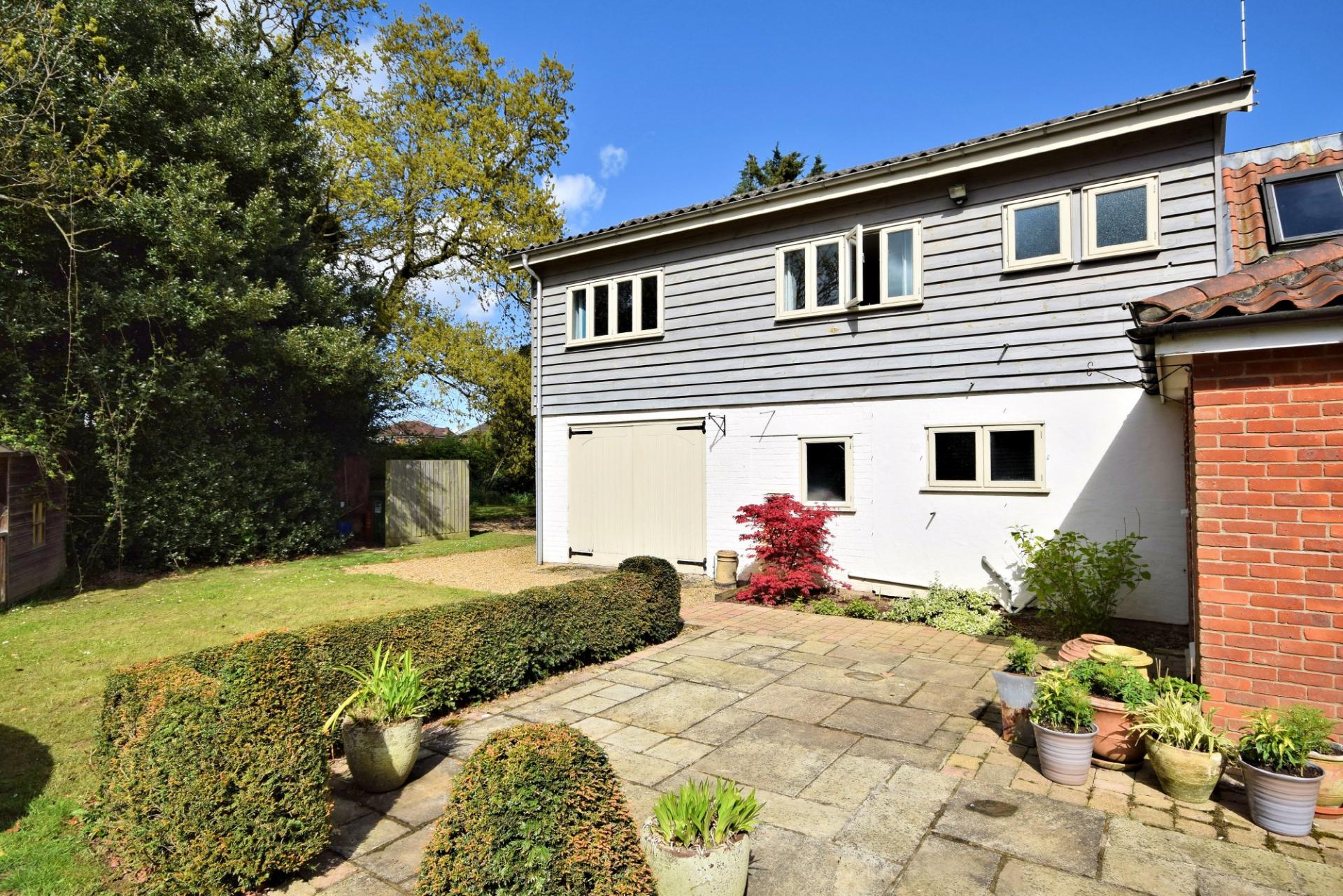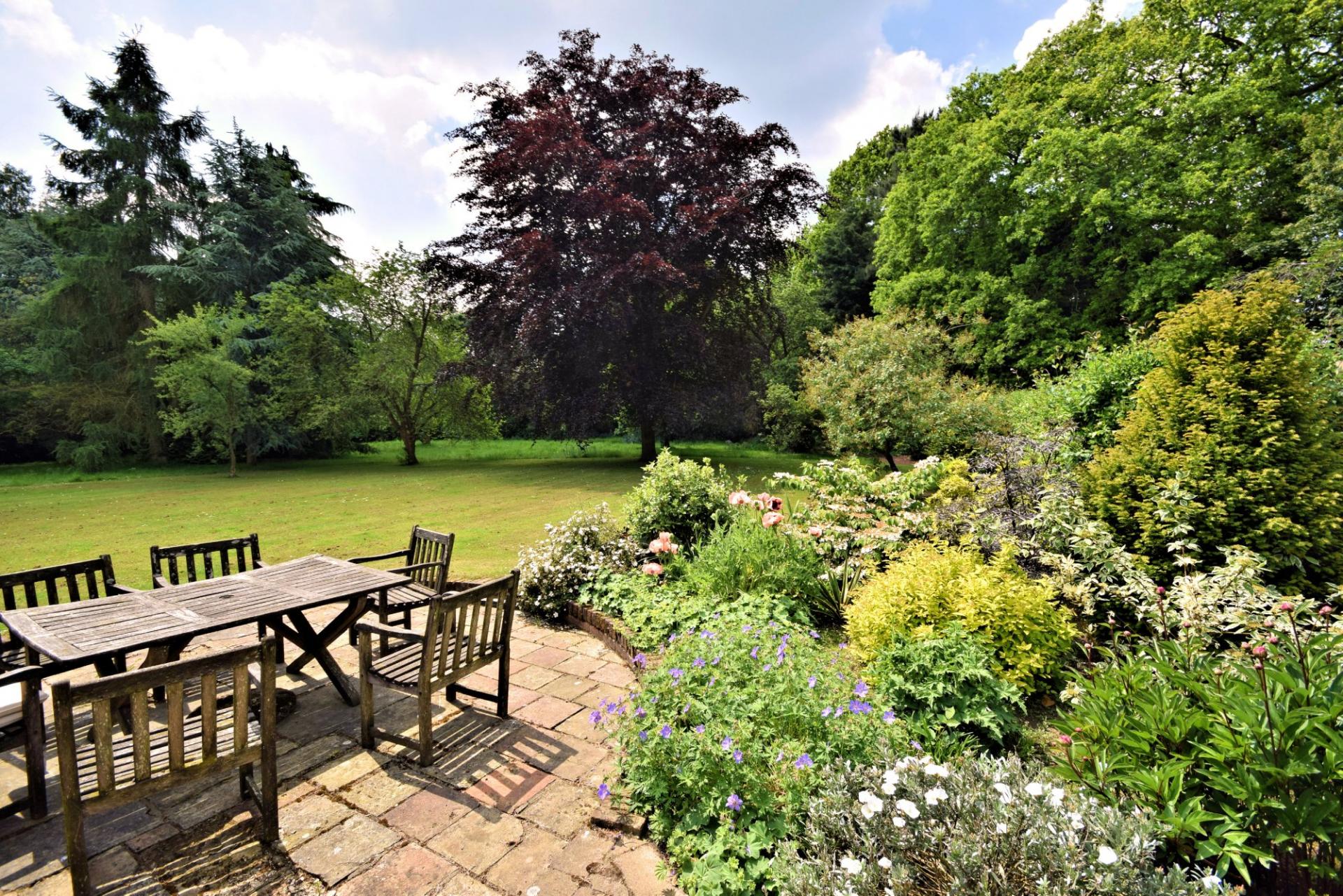 Outside, Ollands is approached via a gravelled drive to a parking area and access to the garage. To the front the garden comprises a lawn, boundary fencing and a selection of mature trees. To the rear there is a terrace with a range of mature shrub borders, lawn, a small woodland, beech hedging and an abundance of woodland spring bulbs. The grounds extend to approximately 1.3 acres (sts).