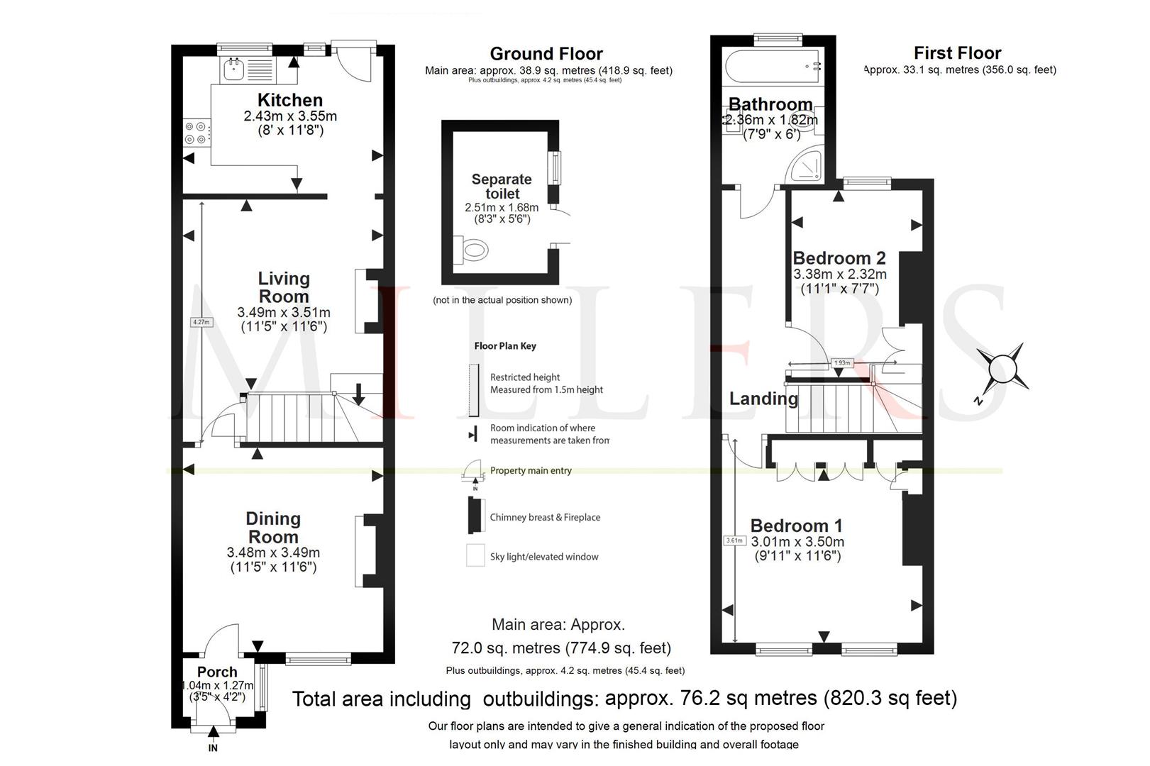 Separate Toilet (Outside) - 2.51m x 1.68m (8'3" x 5'6") -