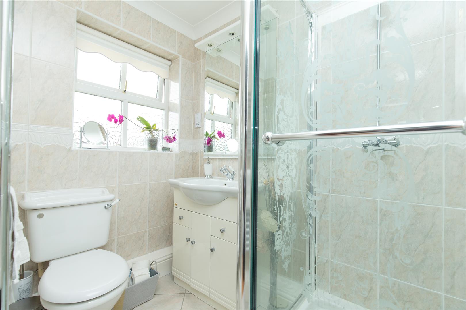 En-Suite - 2.03m x 1.45m (6'8" x 4'9") - Fully tiled walls and flooring with single shower enclosure, vanity housed wash hand basin and low flush WC. Extractor, shaver point, chrome central heated towel warmer and double-glazed frosted window.