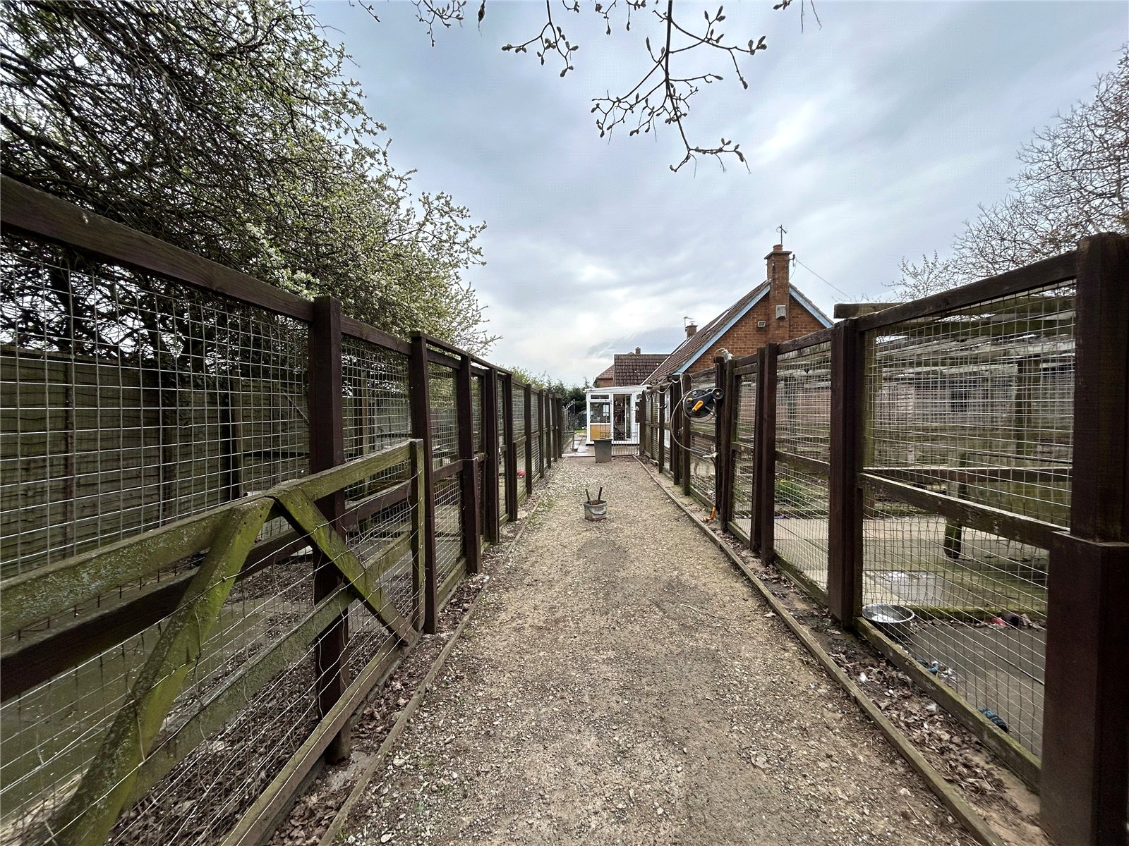 Externally, the property occupies a generous plot with extensive off-road parking, a detached garage, and large gardens. To the rear, there is an established area currently used for dog kennels, with an adjoining enclosed woodland section, offering excellent versatility – whether retained for business use (subject to consents) or reconfigured to create an even larger garden.