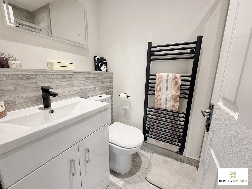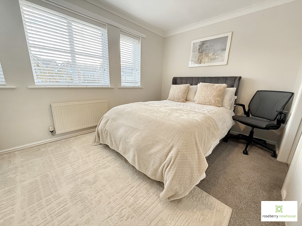 Upstairs, the principal bedroom enjoys a boutique feel with a stylish en-suite shower room. A generous guest bedroom also benefits from its own en-suite, complemented by three further well-proportioned bedrooms and a contemporary family bathroom.