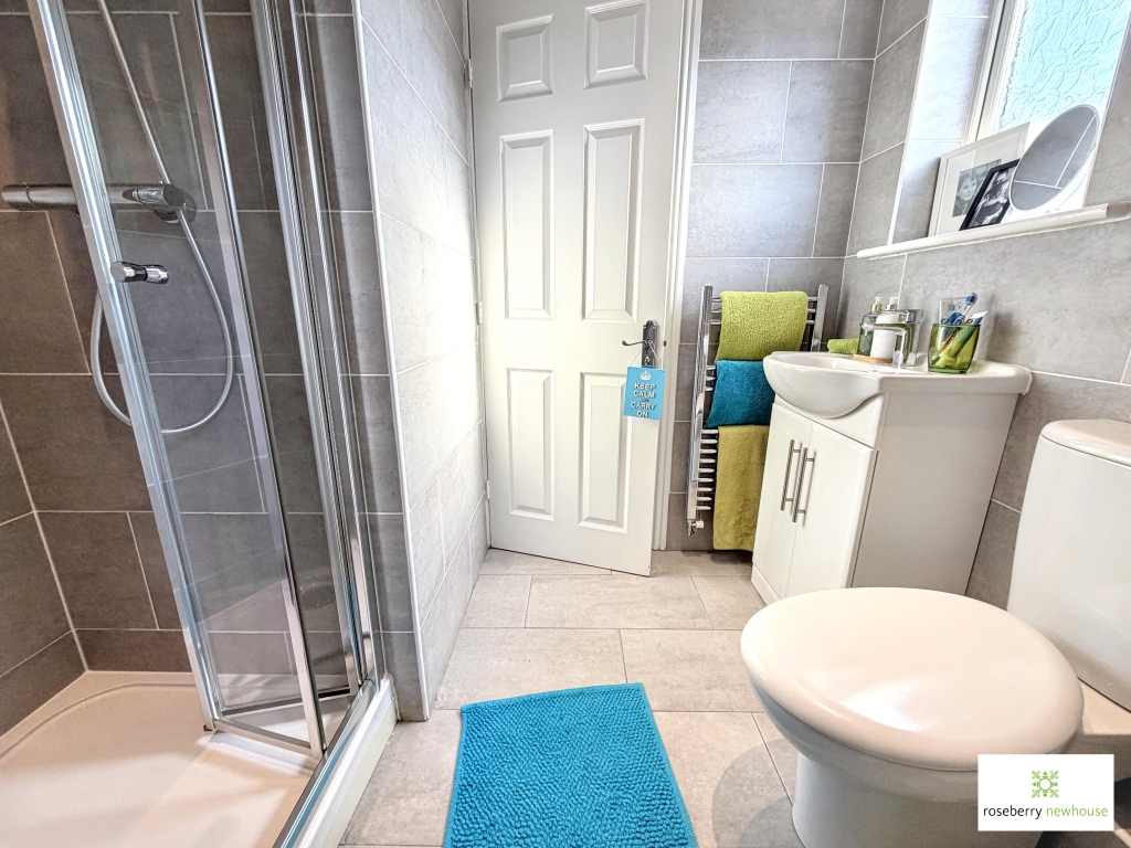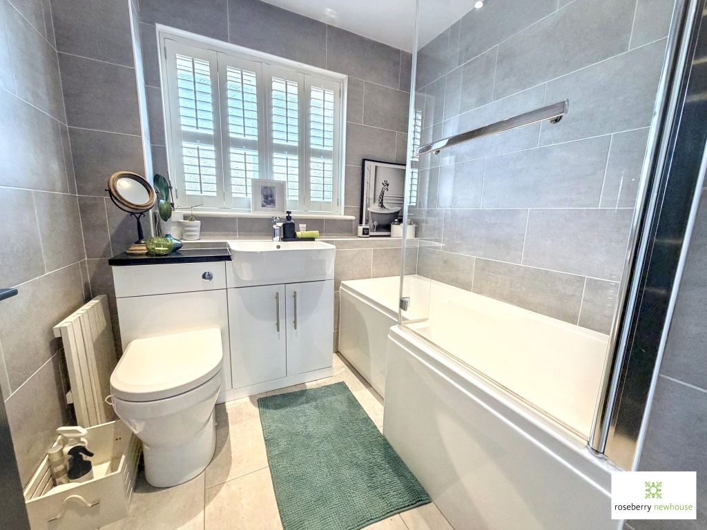 To the first floor, the principal bedroom suite enjoys a large bay window, fitted wardrobes and a modern en suite shower room. Bedrooms two and three are linked by a well-appointed Jack and Jill shower room, while bedroom four is served by a stylish family bathroom, completing the upper floor accommodation.