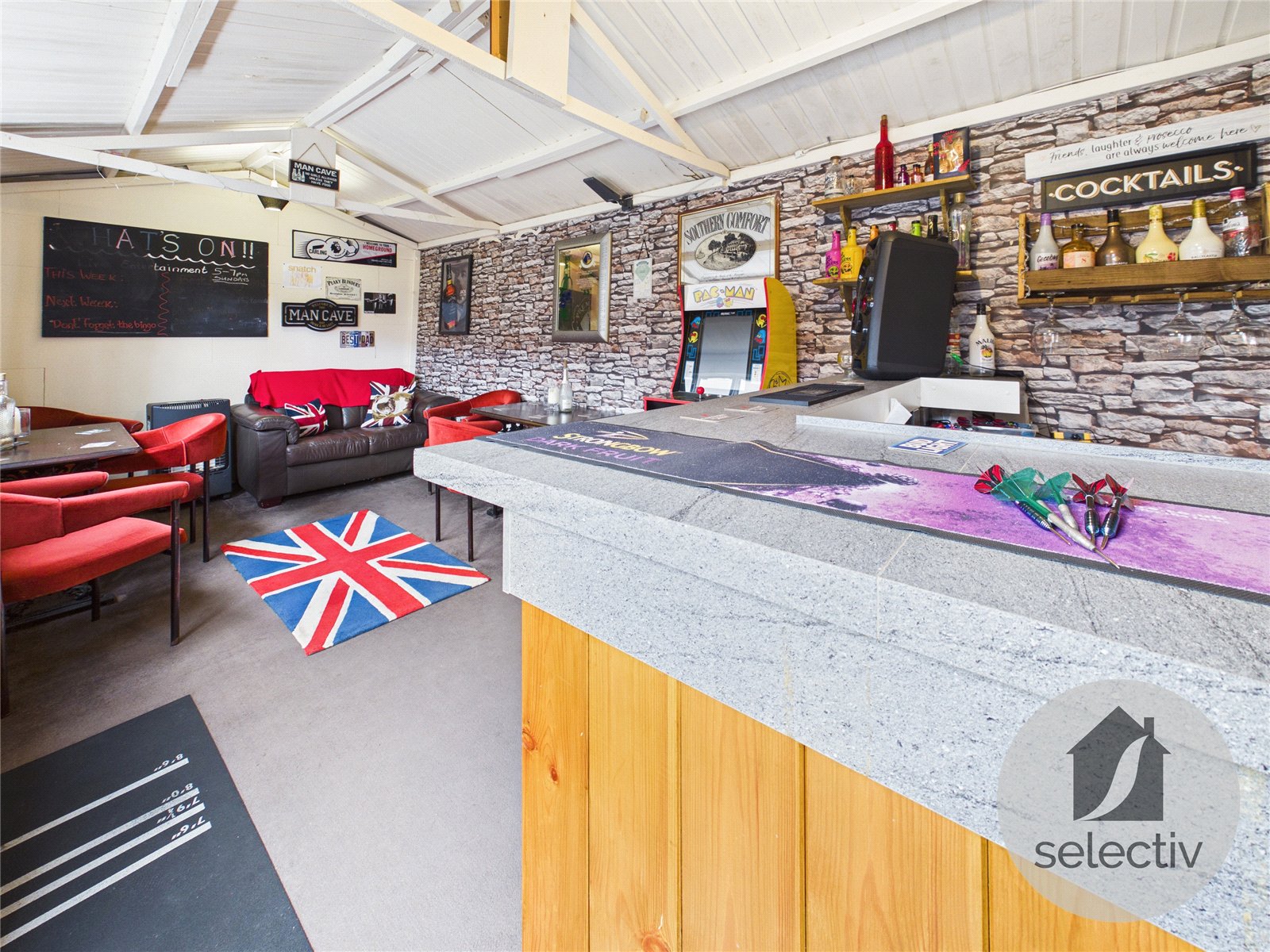 A real standout feature is the detached outbuilding, currently set up as a fantastic bar / entertainment space, offering excellent versatility as a home office, gym or hobby room. There is also a useful brick-built store/workshop ideal for additional storage.