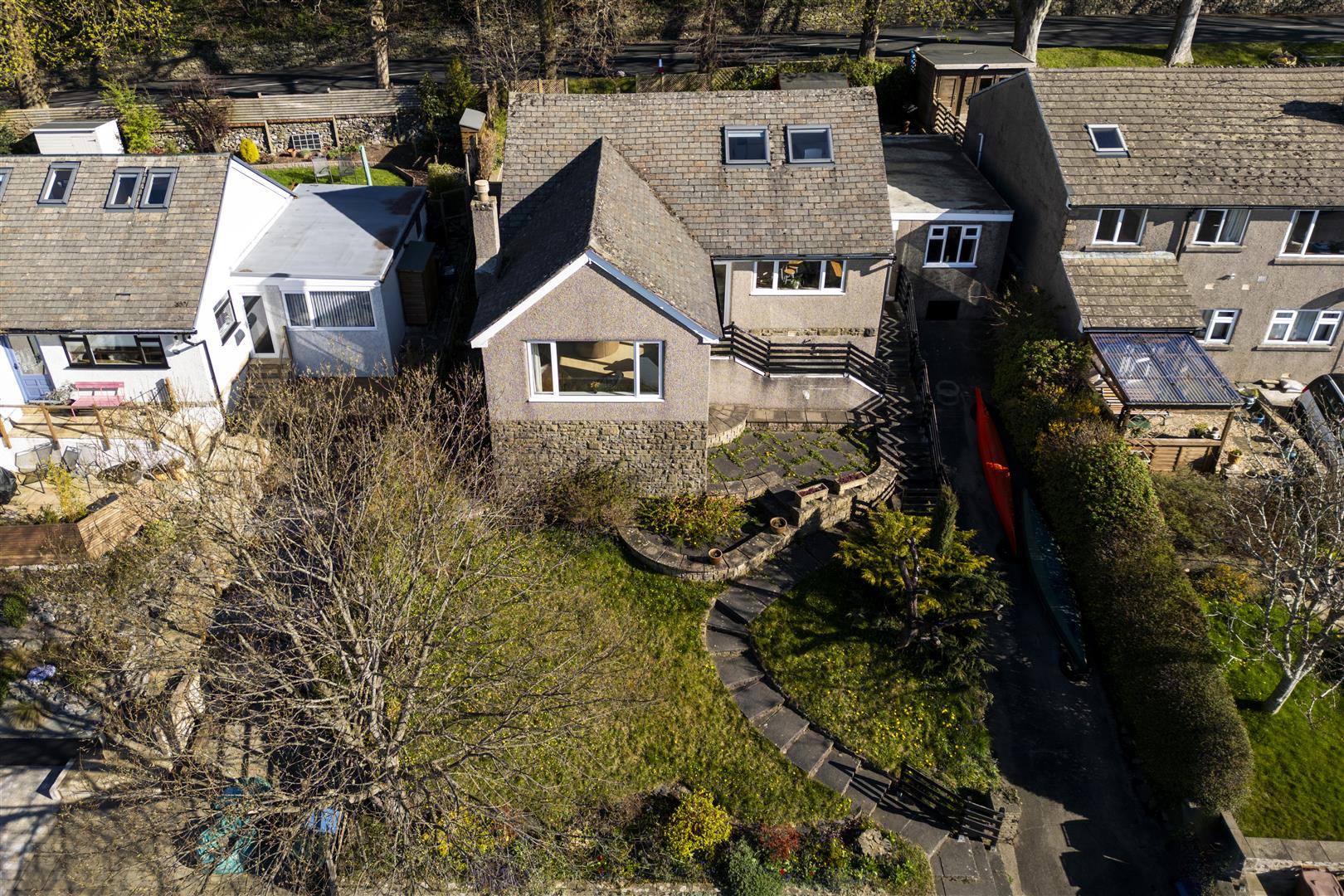 Externally, the property enjoys both front and rear gardens with established planting, areas of lawn and patio, as well as off-road parking via a steep driveway.