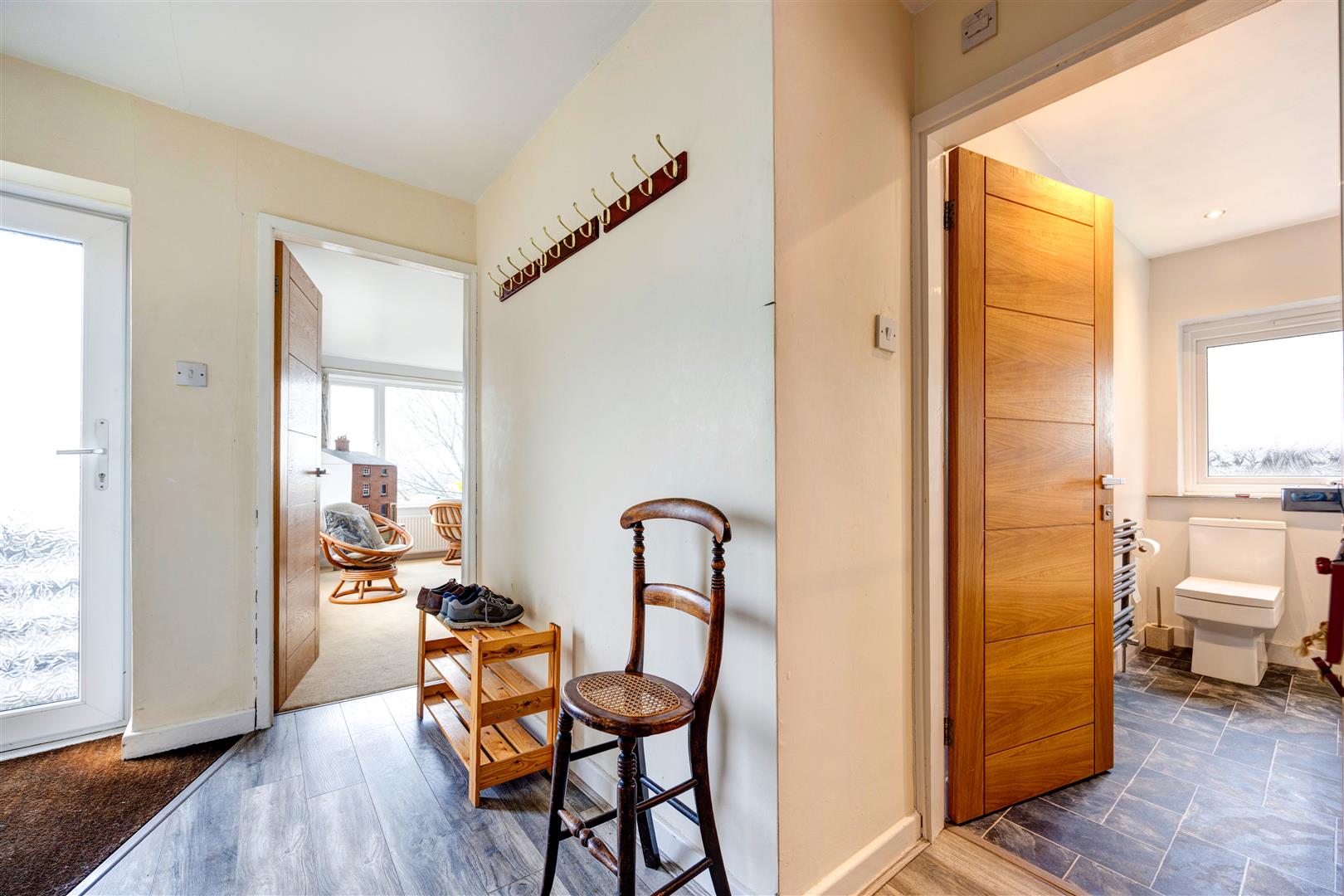 Entrance Hall - Hard wearing entrance mat, grey wood effect laminate flooring, radiator, meter cupboard, airing cupboard, staircase to first floor, under stairs storage cupboard, double glazed door to front with textured glass.