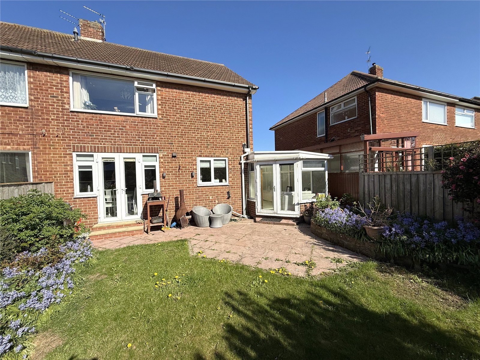 To the rear, the kitchen / dining area is where this home really earns its keep. Featuring modern wall and base units, excellent worktop space and a layout designed for real living, there’s plenty of room for dining and day-to-day use. French doors open out to the rear garden, bringing in natural light and creating a seamless connection to the outside. The conservatory provides a further versatile reception space, ideal as a second sitting area, playroom or somewhere to relax overlooking the garden.