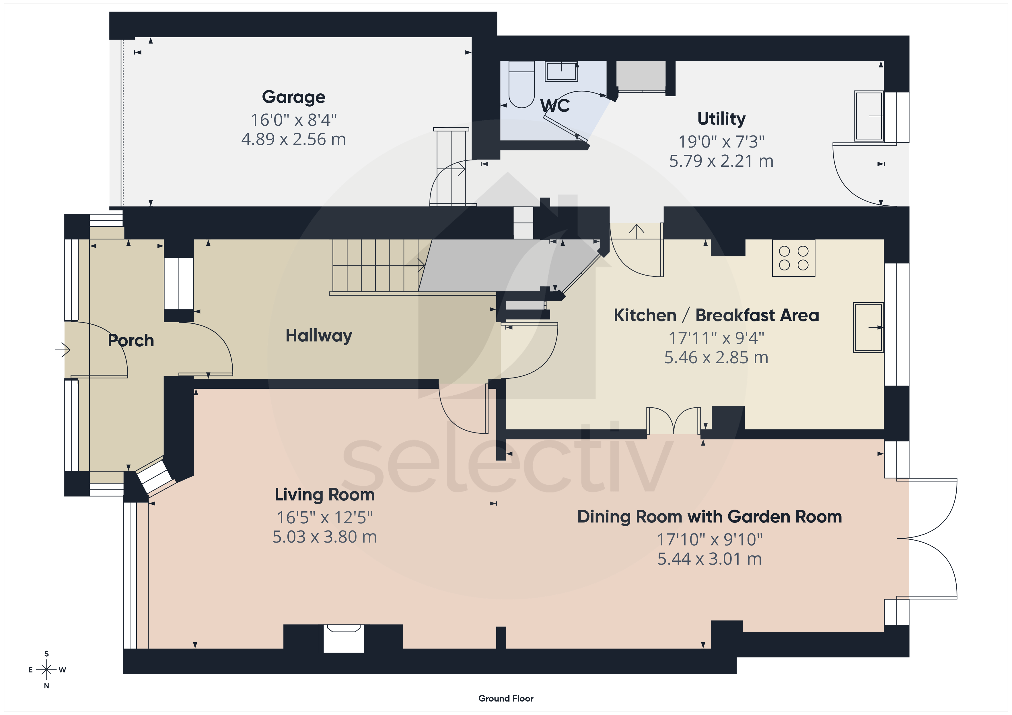Beyond the kitchen, a separate utility room provides additional workspace and storage, with access out to the rear garden, while a ground floor WC adds further practicality.