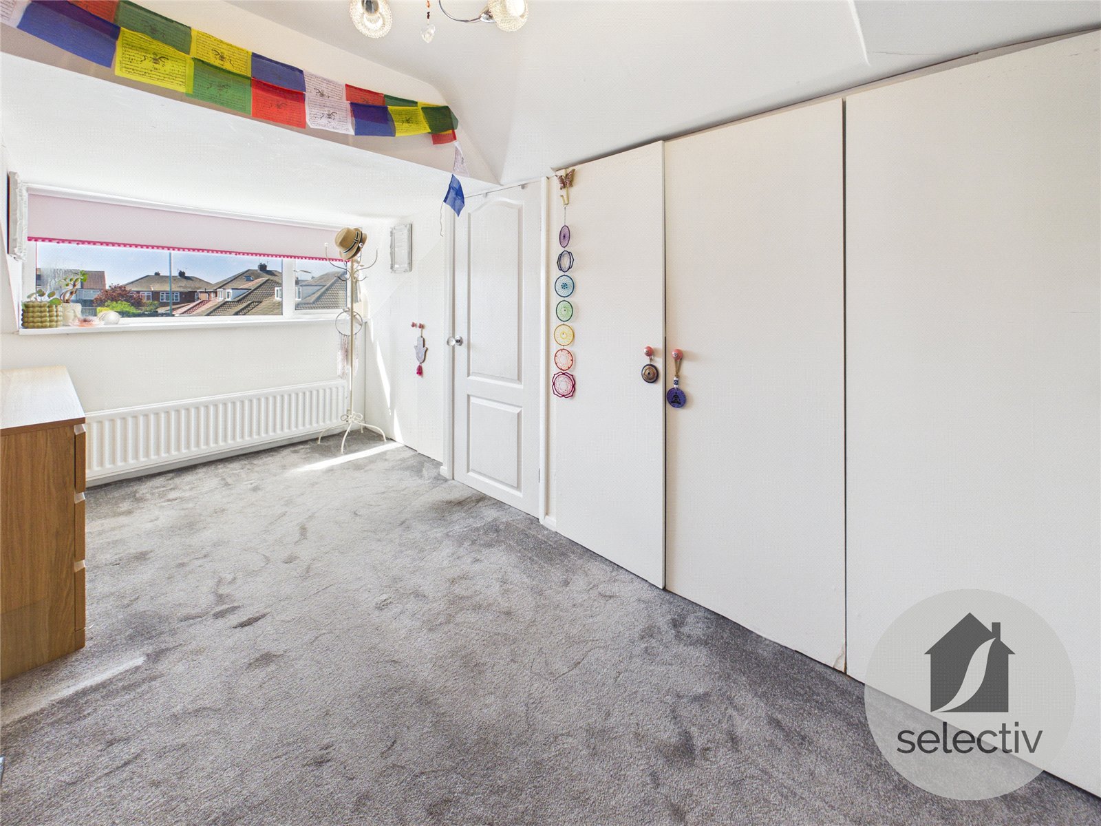 To the first floor, a further well-proportioned bedroom provides excellent flexibility—ideal as a main bedroom, guest space or home office—alongside useful boarded loft storage space, a valuable practical addition.