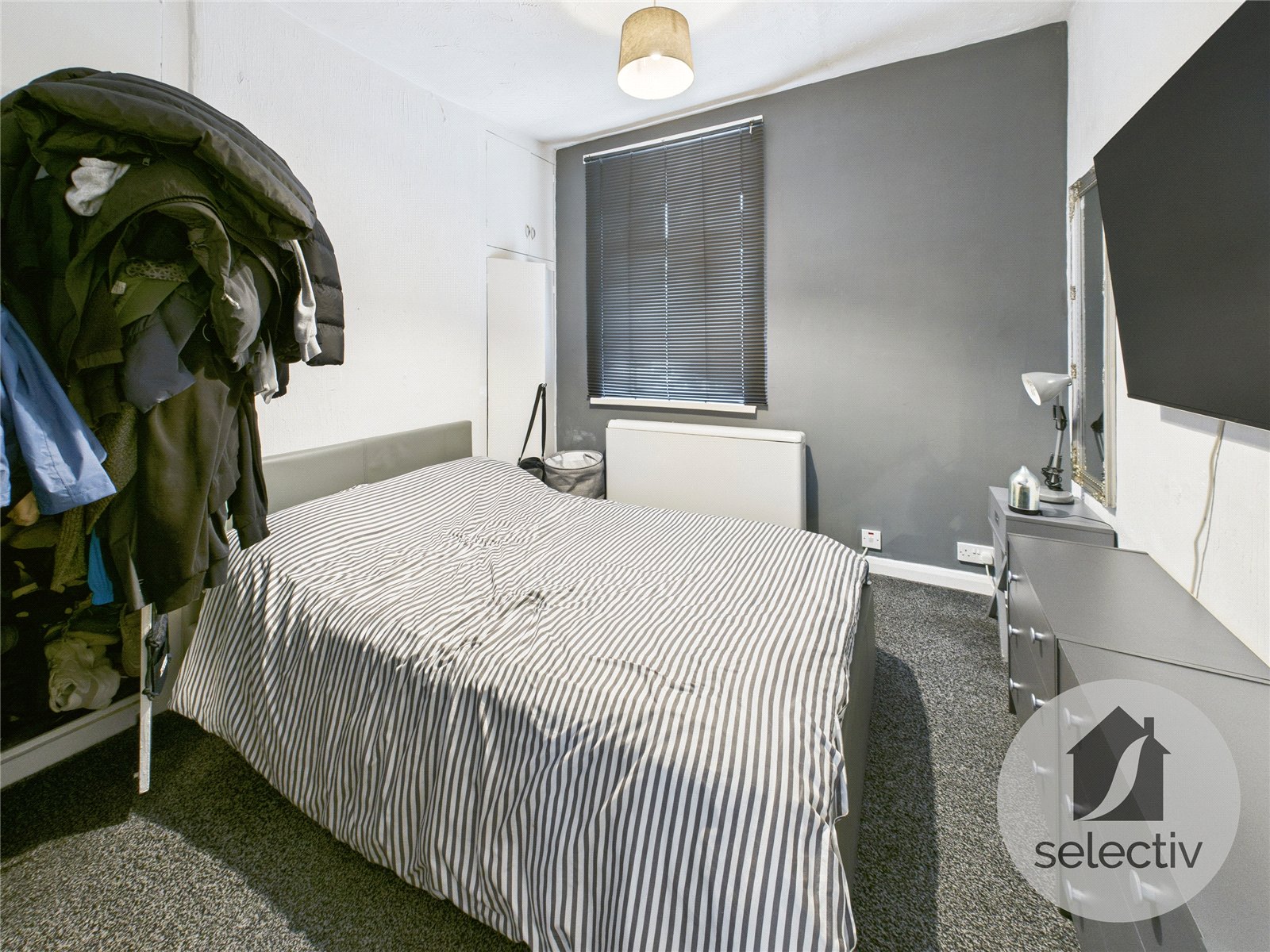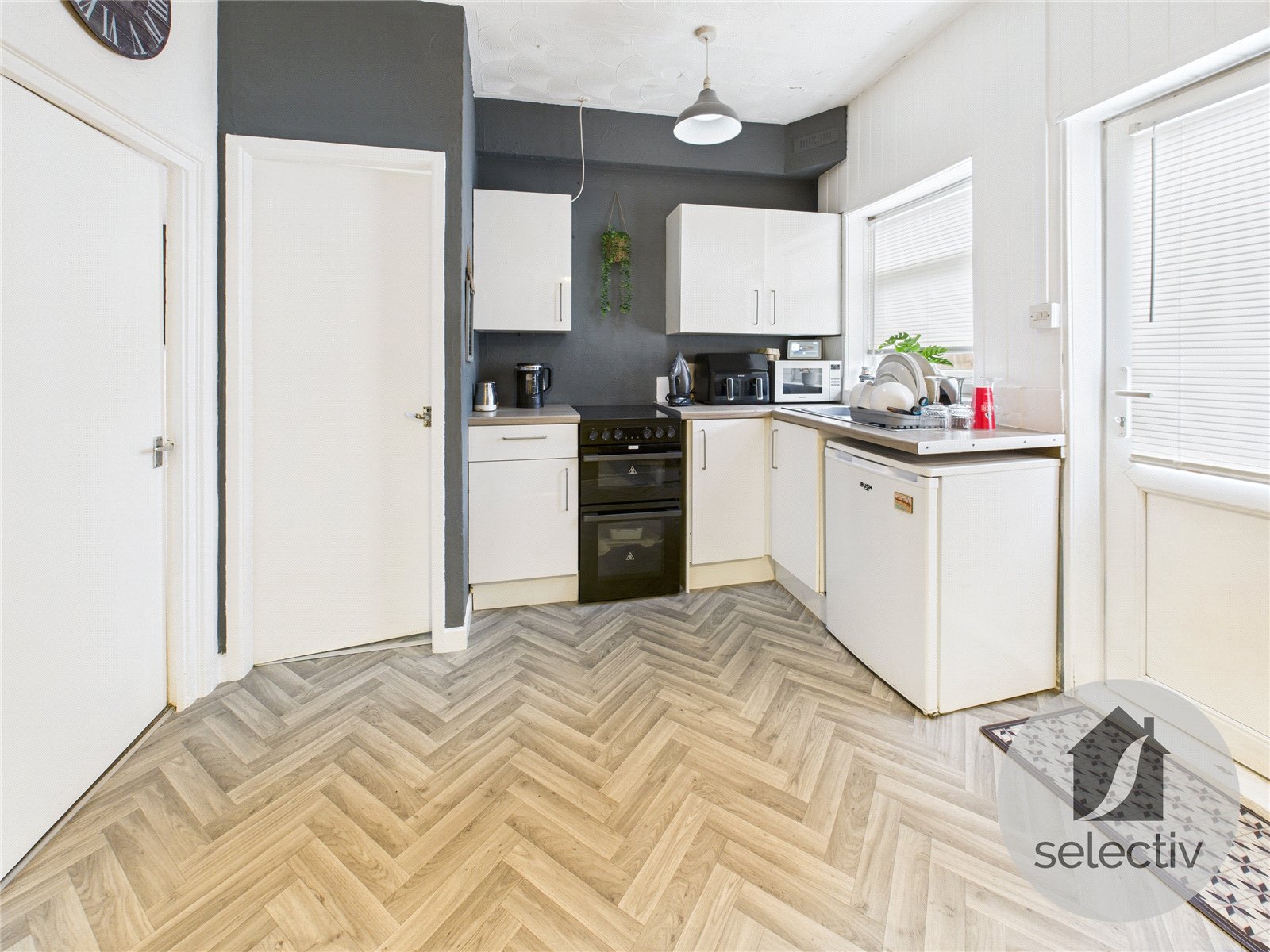 The first floor two-bedroom flat benefits from electric heating and double glazing, offers direct access to the rear of the property, and features an open-plan kitchen/living area, two double bedrooms and a bathroom/WC, currently achieving £375 per calendar month.