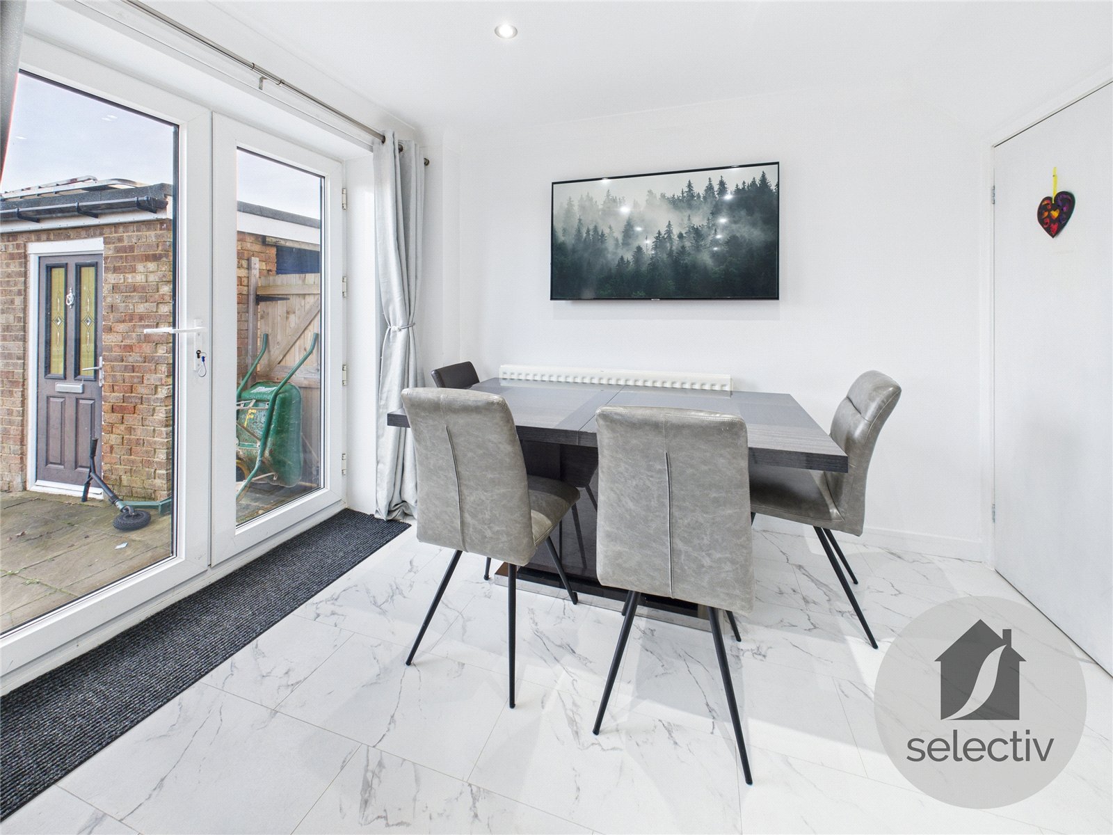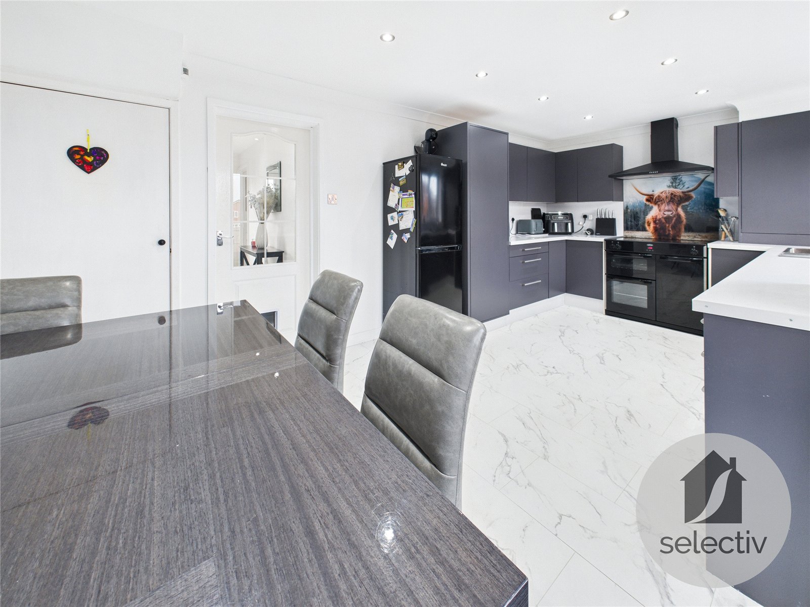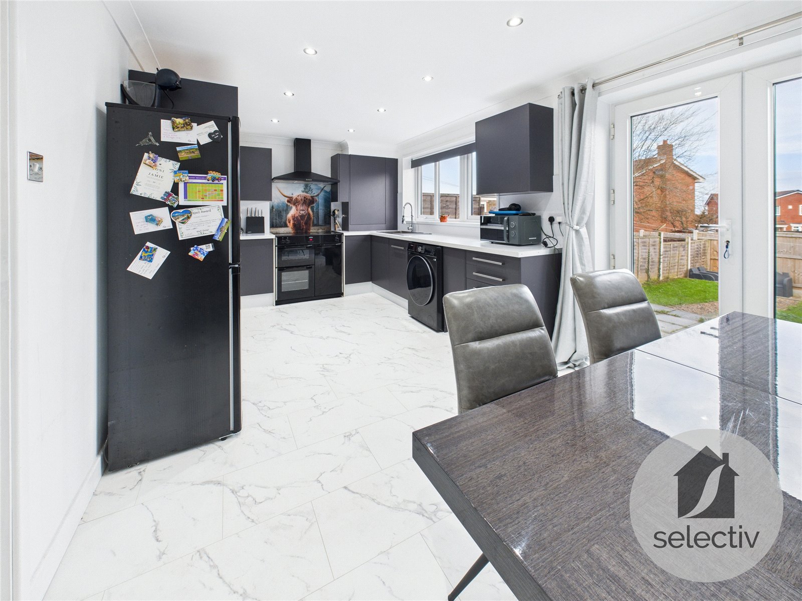 The accommodation begins with a welcoming entrance hall, leading through to a comfortable living room, before opening into the heart of the home — a stunning open plan kitchen / dining area. This space has been beautifully designed for modern living and entertaining, with French doors opening directly onto the rear garden, creating a great connection between inside and out.