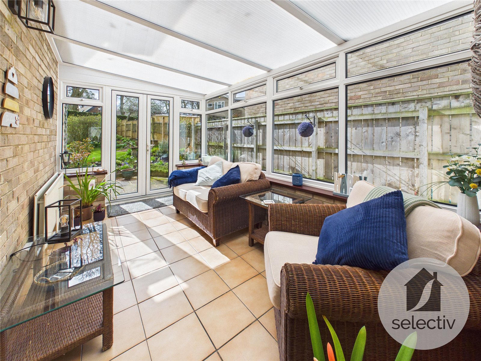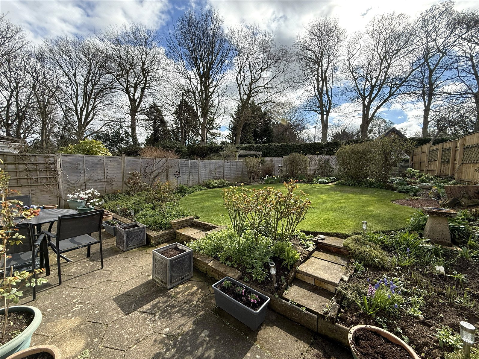 Externally, the property occupies a superb SOUTH FACING plot with a beautifully maintained and generous rear garden — a real highlight for those looking for outdoor space. To the front, a concrete imprint driveway provides off-road parking for multiple vehicles and leads to a single garage.