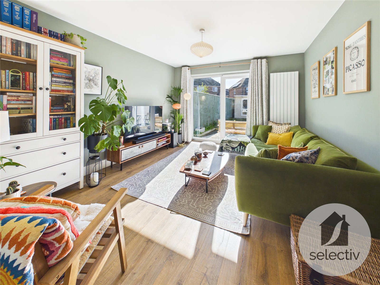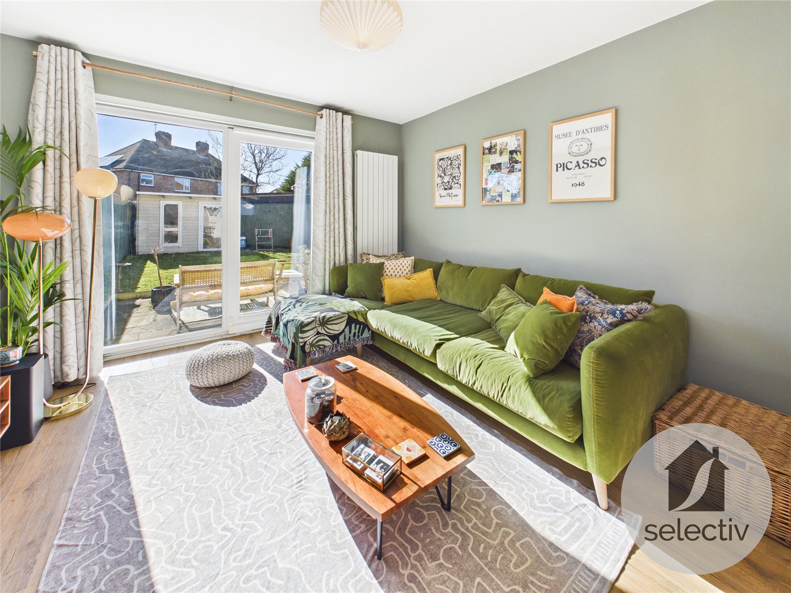 Step inside and you’re greeted by a bright and welcoming hallway. To the rear, a beautifully styled living room is finished in modern, neutral tones and filled with natural light, with patio doors opening directly out to the rear garden — creating a seamless connection between indoor and outdoor living.