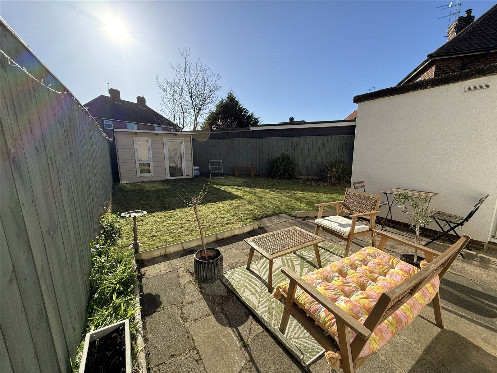 Externally, the property really comes into its own. The SOUTH WEST FACING REAR GARDEN has been well planned, beginning with a patio seating area and extending out to a mainly lawned garden — ideal for relaxing, entertaining or enjoying the afternoon and evening sun.