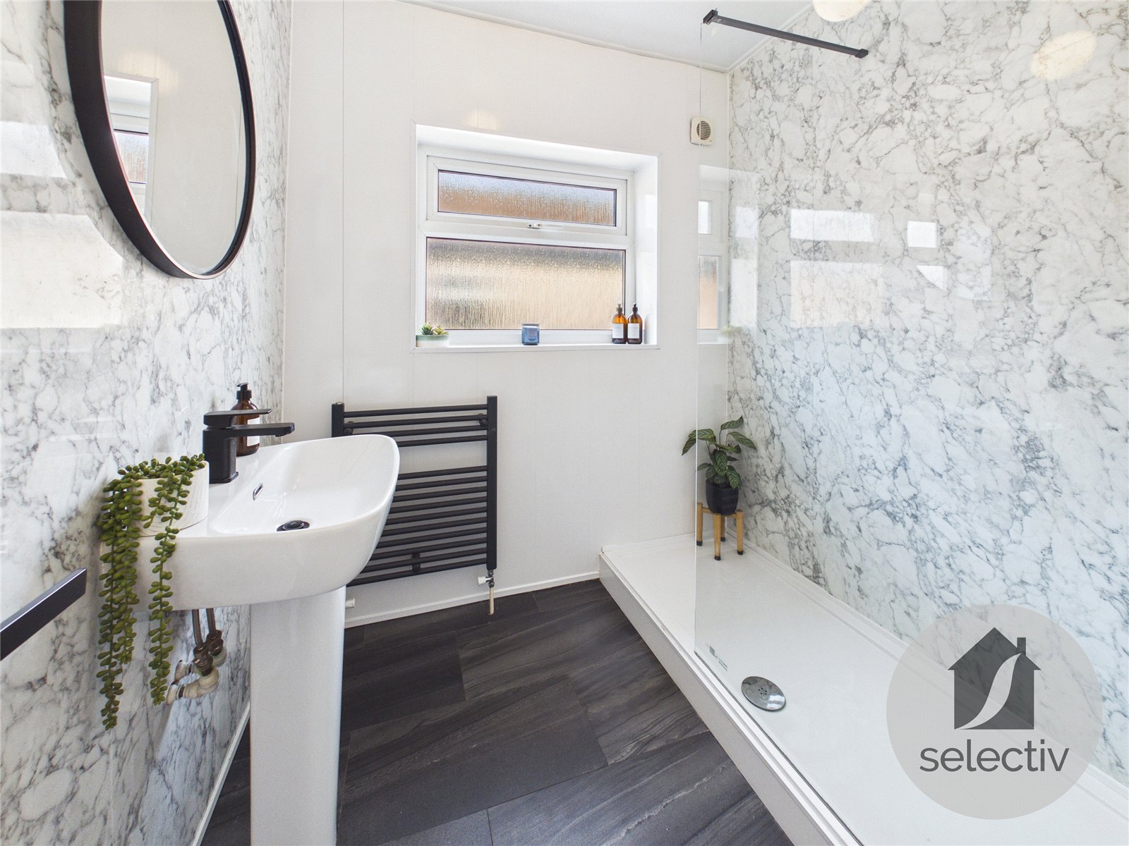 Upstairs, the home continues to deliver with three well-proportioned bedrooms, including two generous doubles, along with a stylish shower room featuring a walk-in shower, complemented by a separate WC — ideal for busy households.