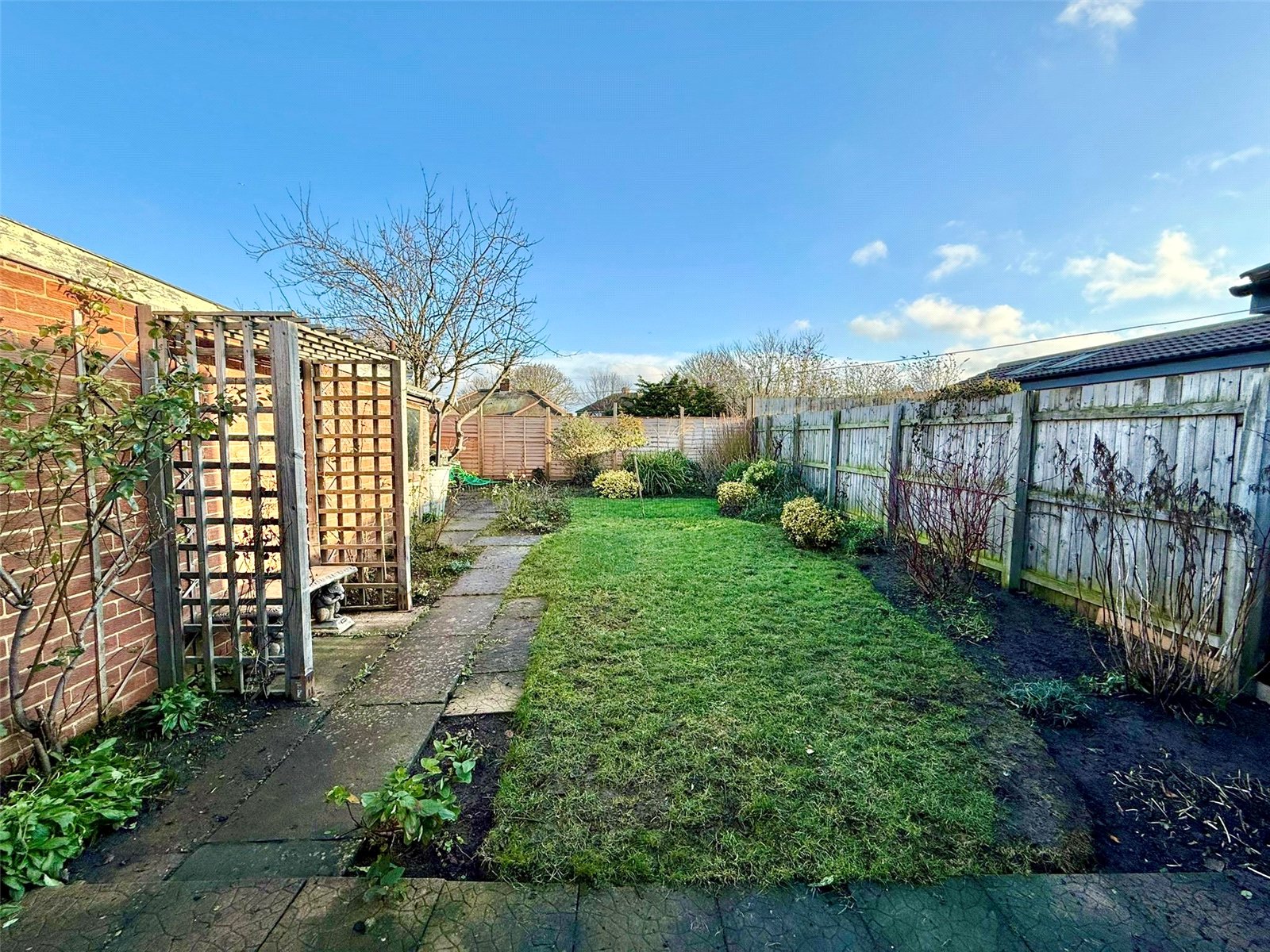 Externally, the property continues to impress with a block paved side driveway leading to a detached garage. The frontage is designed for ease of maintenance with attractive planting, while to the rear is an enclosed garden which begins with a paved patio area extending to the mainly lawned garden beyond — perfect for enjoying the outdoor space.