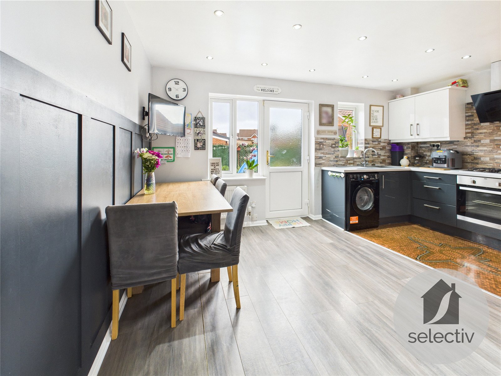 Step inside to discover an inviting entrance lobby adorned with stylish laminate flooring and a practical storage cupboard. The spacious living room flows seamlessly into the chic, open-plan modern fitted kitchen and dining area—ideal for both family gatherings and entertaining guests.