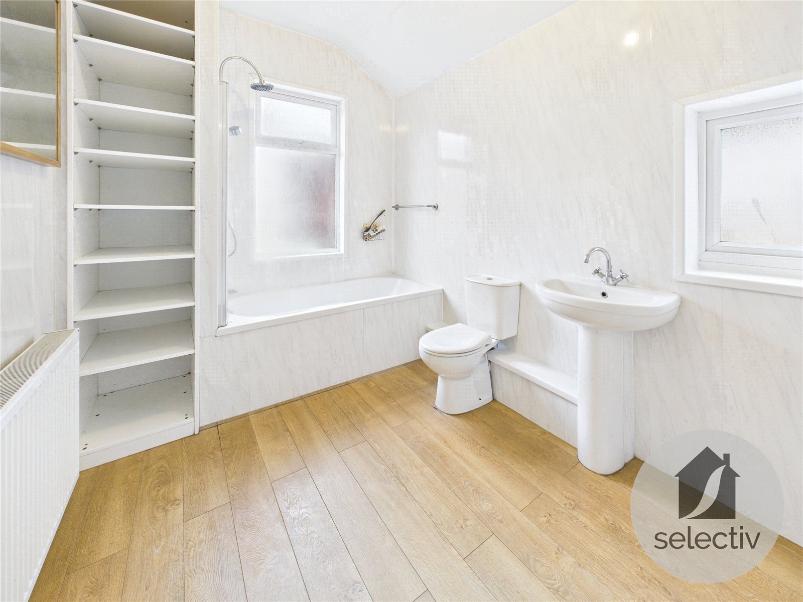 Upstairs, there are two good-sized double bedrooms and a large bathroom/WC fitted with a white suite and shower over the bath.