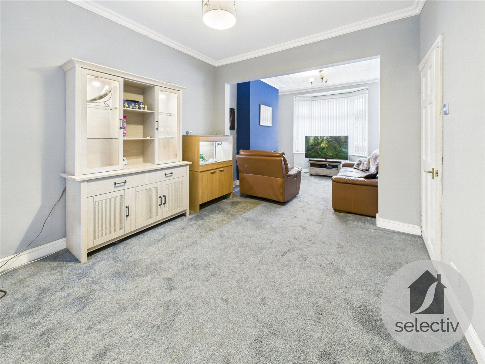 The entrance hall leads to a welcoming living room with a bay window to the front, opening into a generous family/dining room — ideal for relaxing or entertaining. The fitted kitchen features a modern range of units and a door to the rear yard.